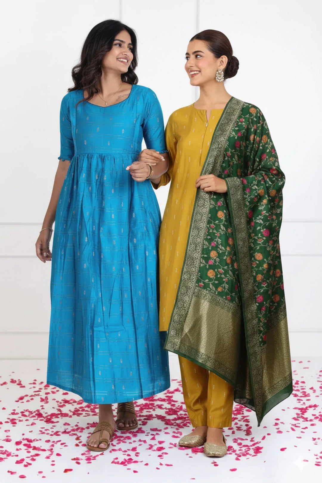 • Postpartum Wear: Seamlessly doubles as elegant festive wear post-pregnancy—comfort meets timeless style