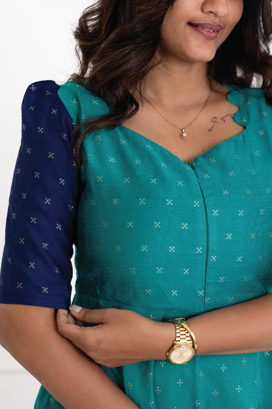 •     Design: It has two fabrics of different colours, mix and matched at sleeve, border and body