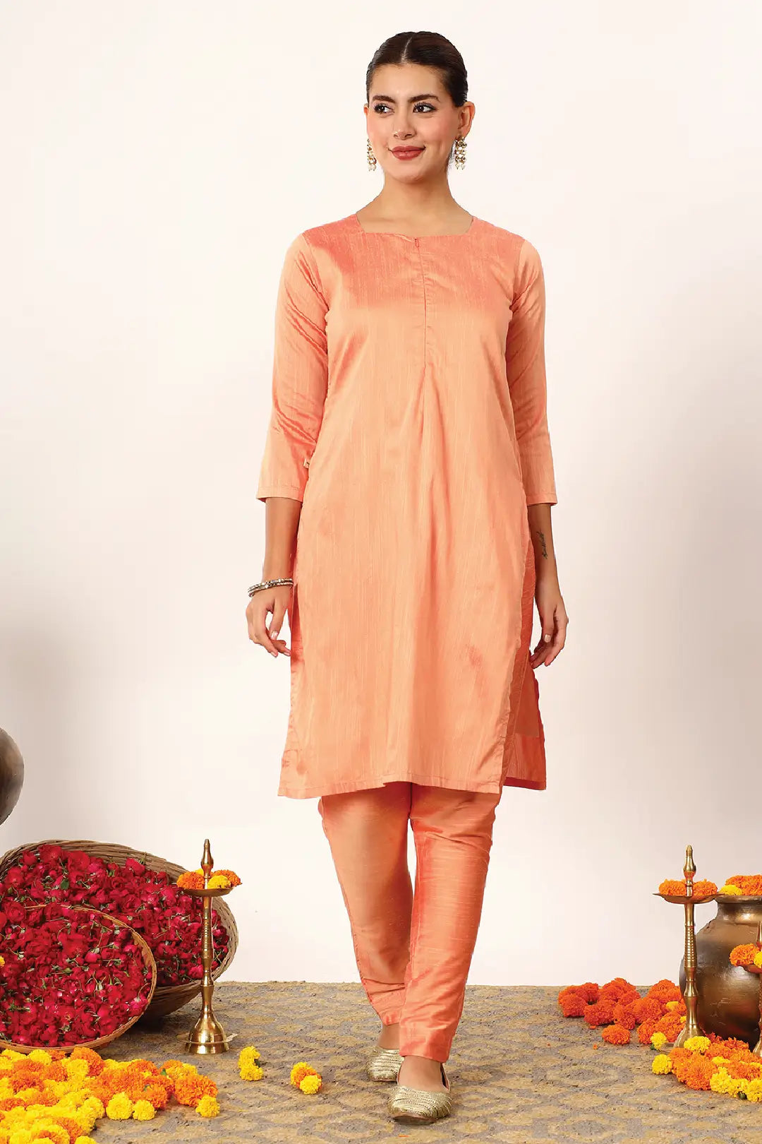 • Stitching Details: Diamond neckline, Straight silhouette with slit
