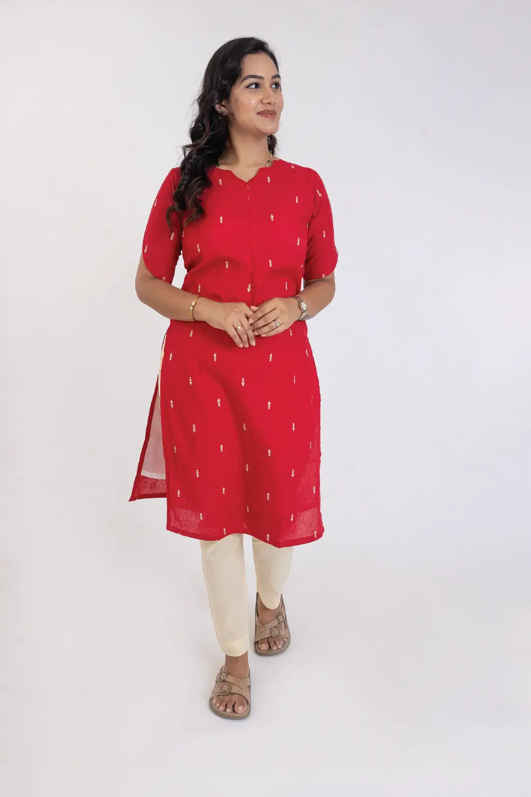 •        Stitching Details: Leaf neckline, Straight silhouette with slit