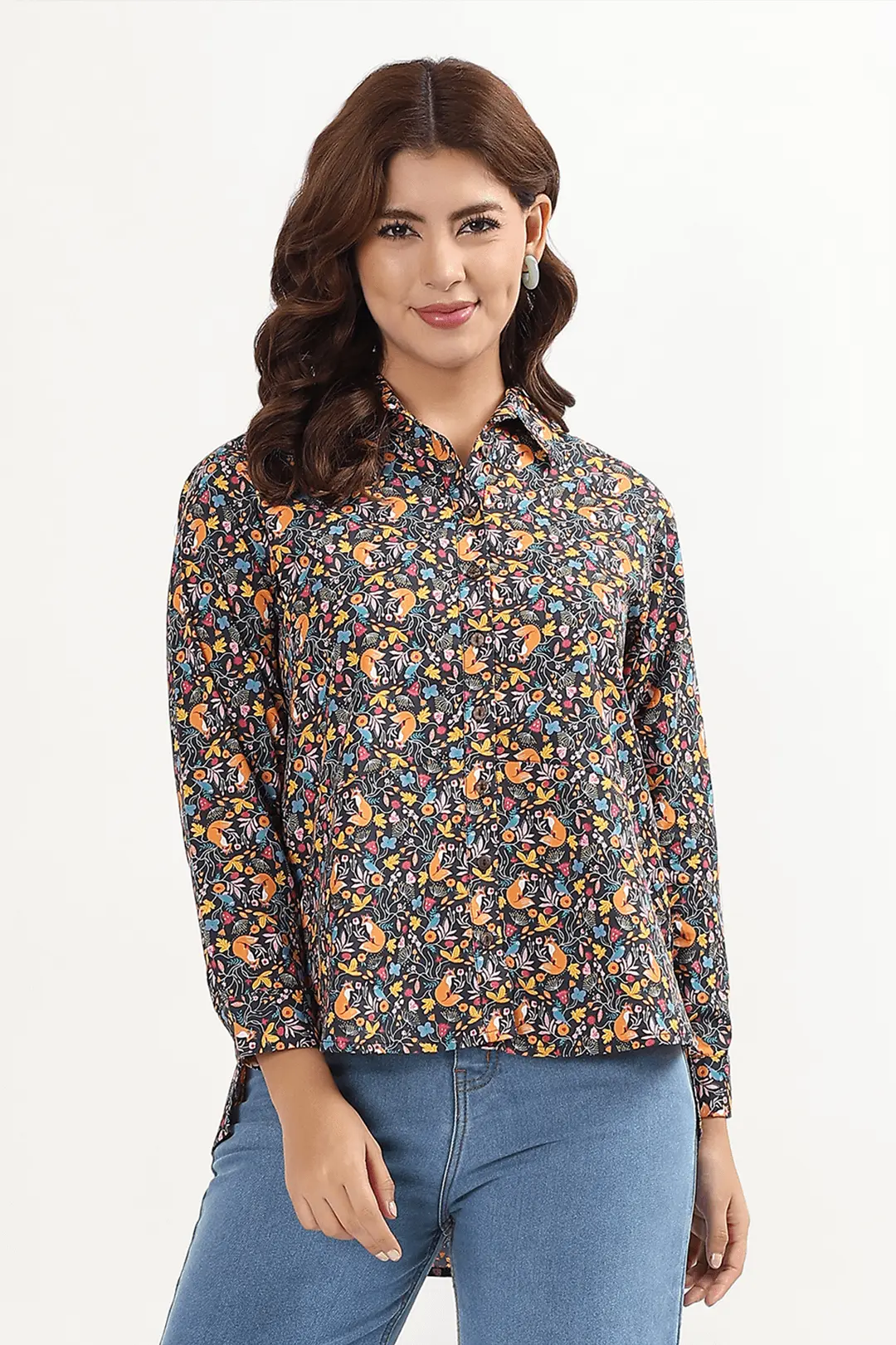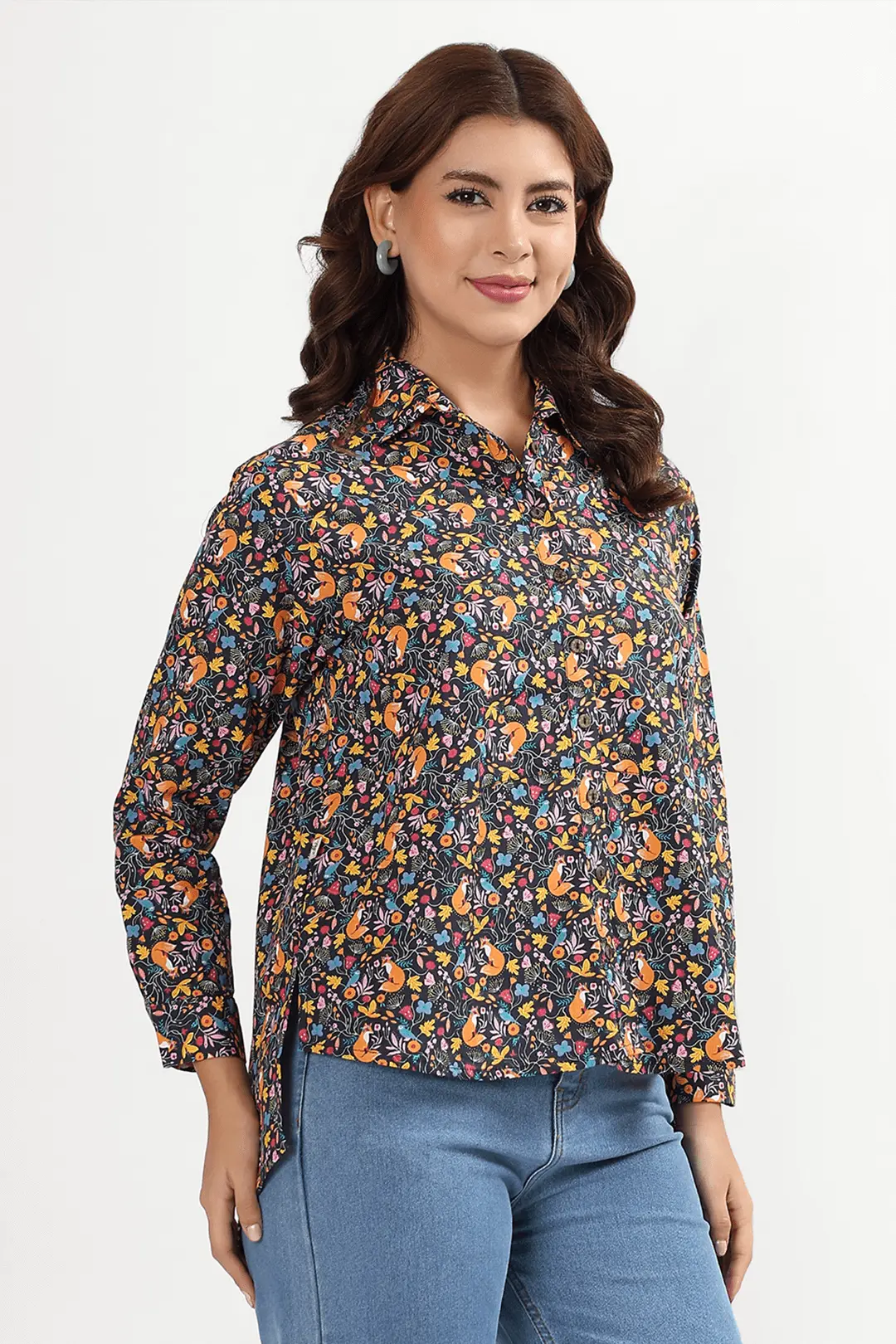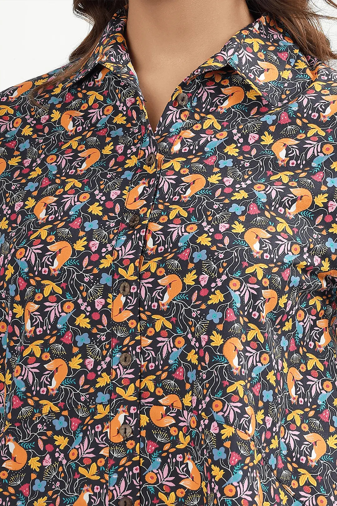 • Fit: Asymmetrical shirt with button-down placket, designed to flatter all body types & growing bumps