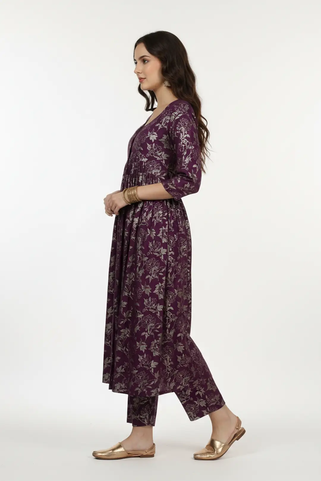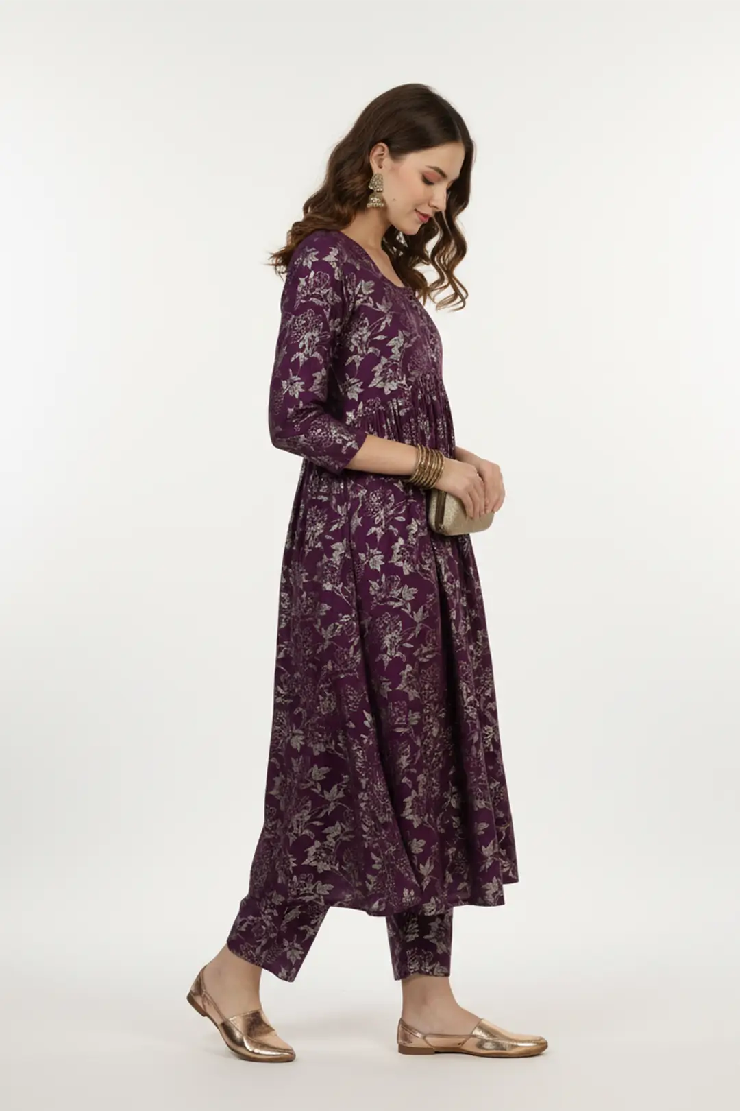 •     Fit: Relaxed A-line kurta silhouette designed to flow comfortably over the body, along with Straight fit trouser