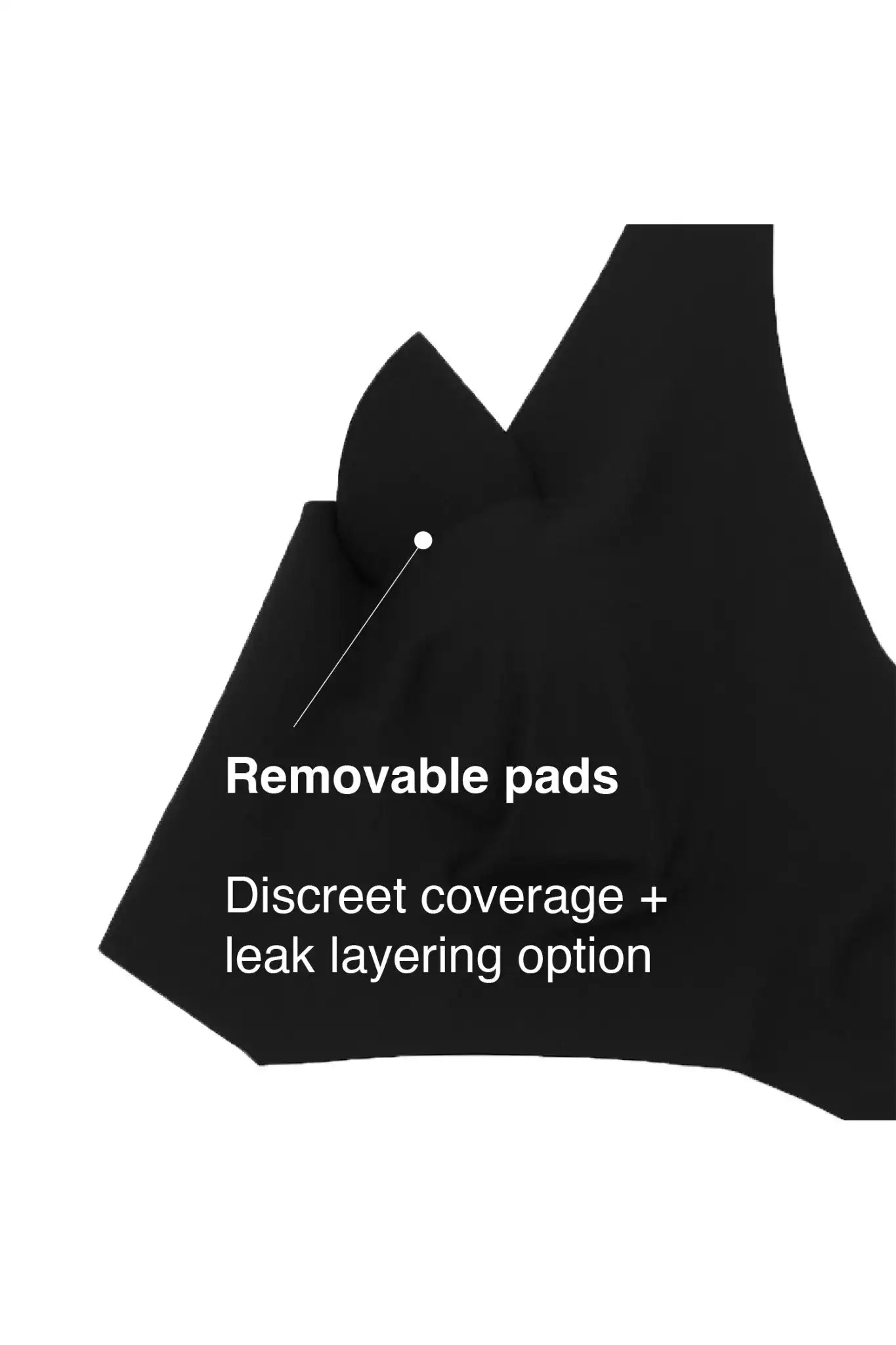 Fit: Wire-free · Pull-on · Removable Pads · Second-skin soft