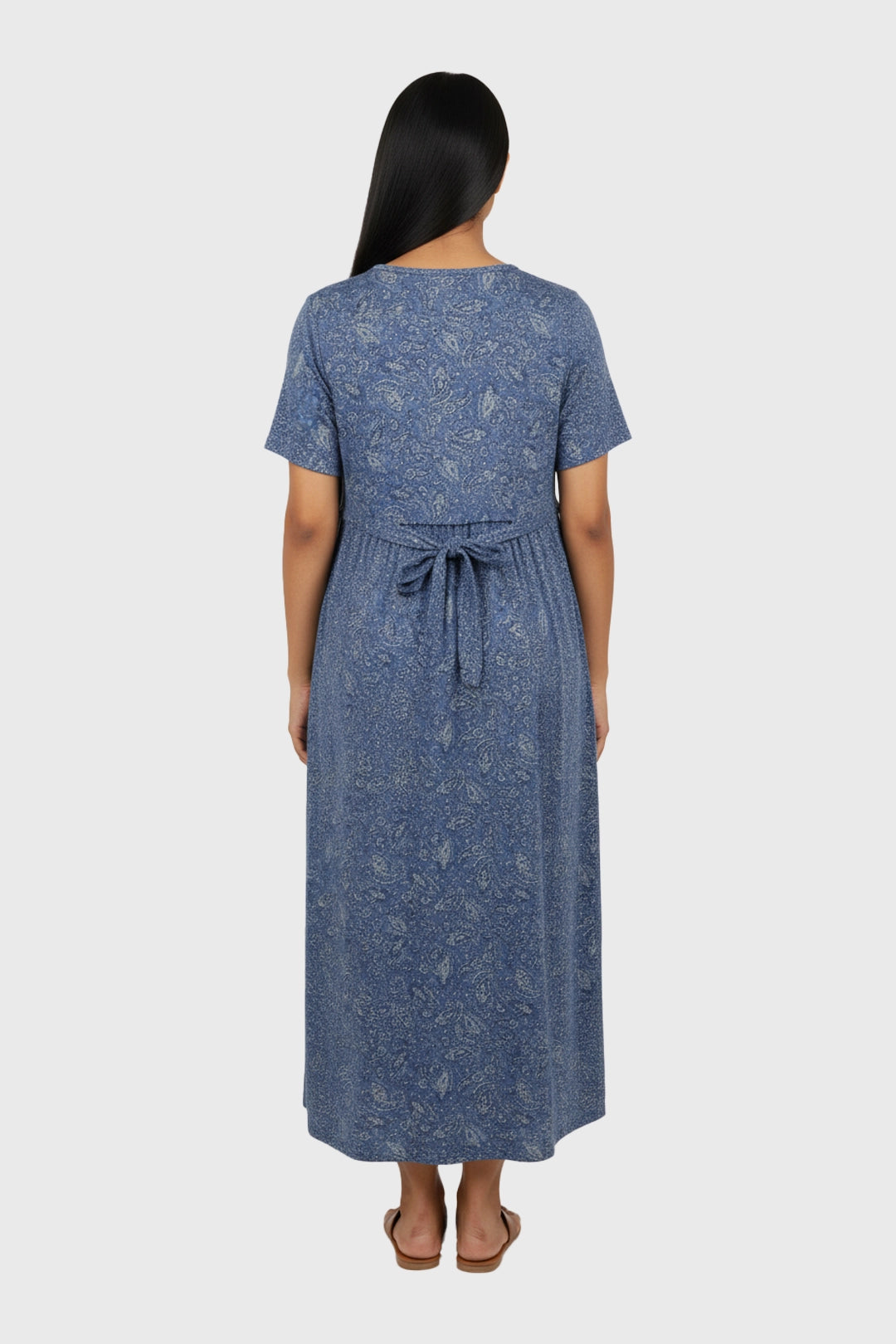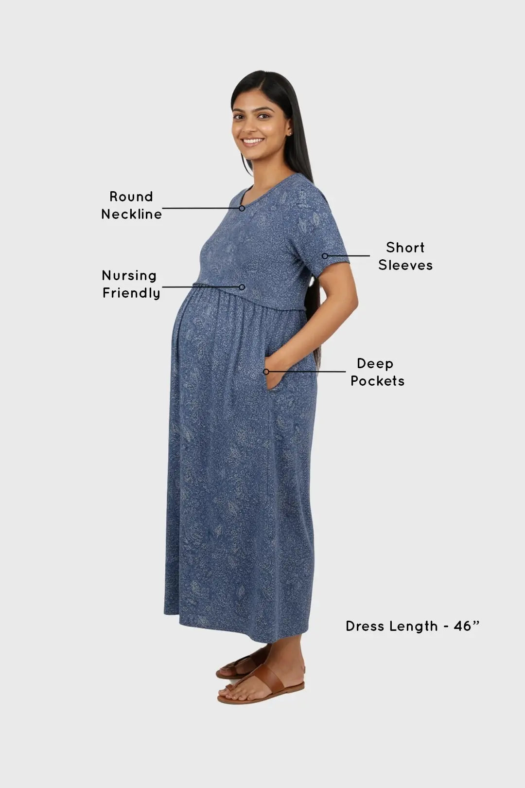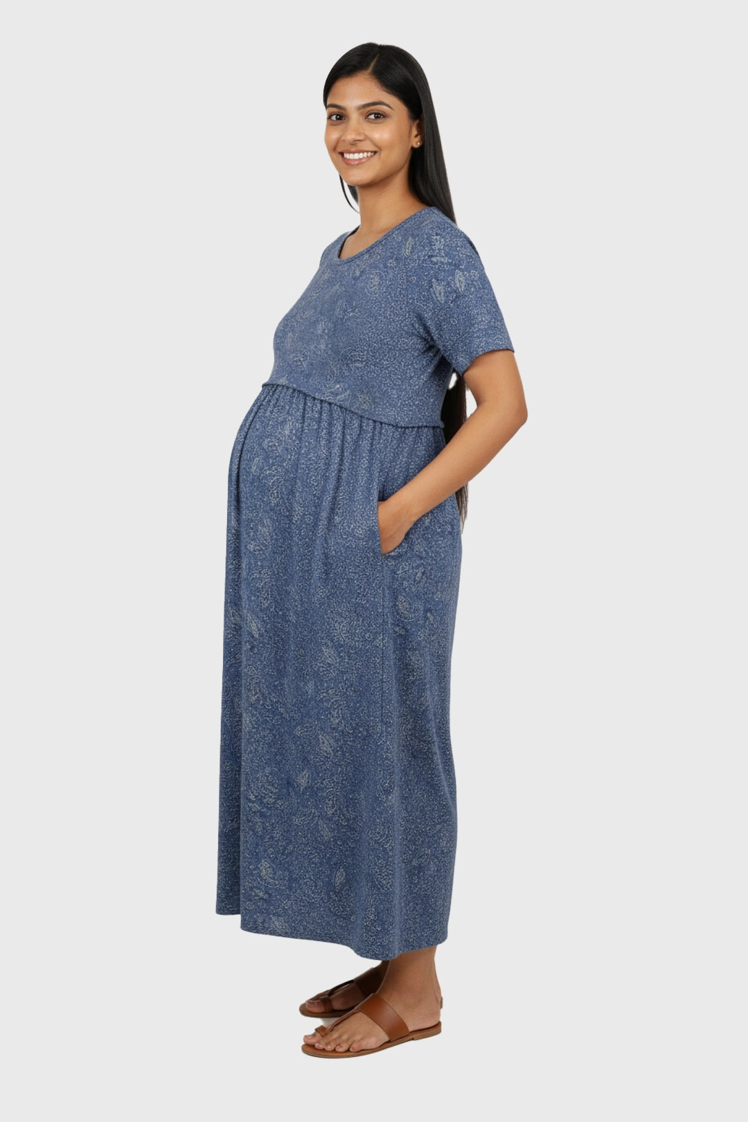 Ditsy Paisley  Zipless Feeding Gown is where softness meets simplicity — thoughtfully crafted for slow mornings, relaxed afternoons, and every moment in between. Designed without zips or fuss, this piece gently supports you through pregnancy, postpartum, and nursing days, offering unmatched comfort with a quiet elegance.