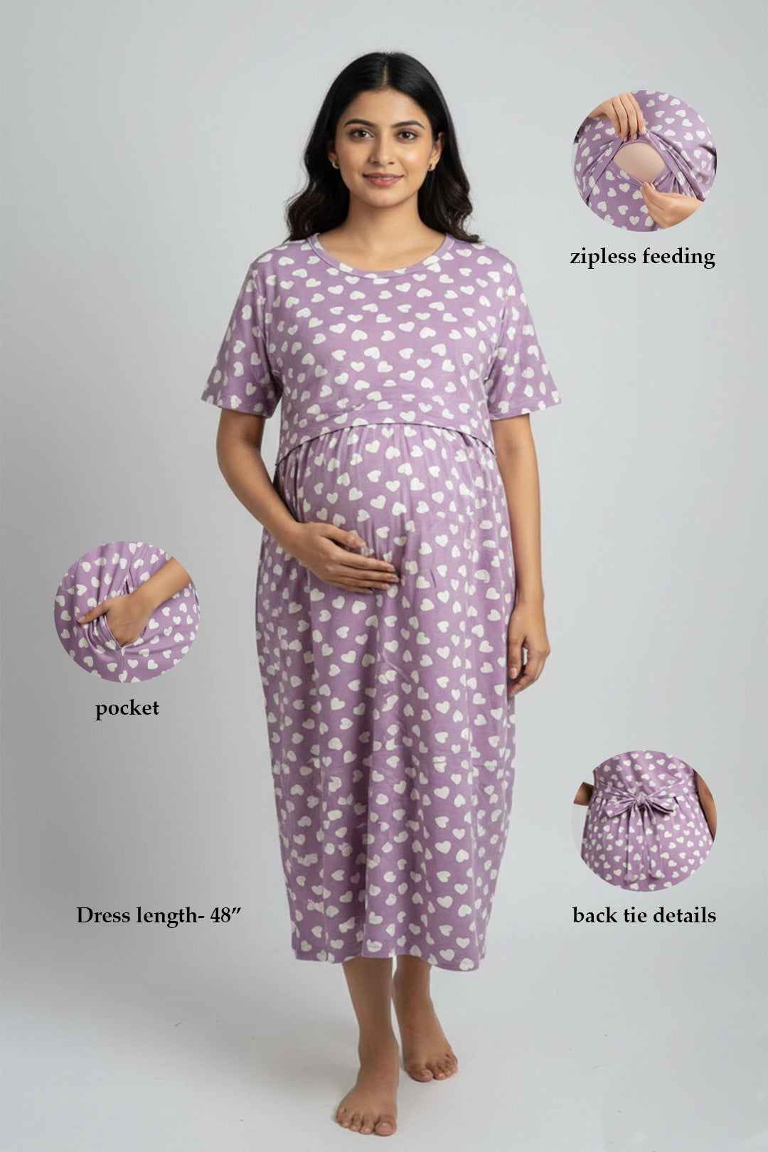 Dreamy Heart Zipless Feeding Gown – iris lavender