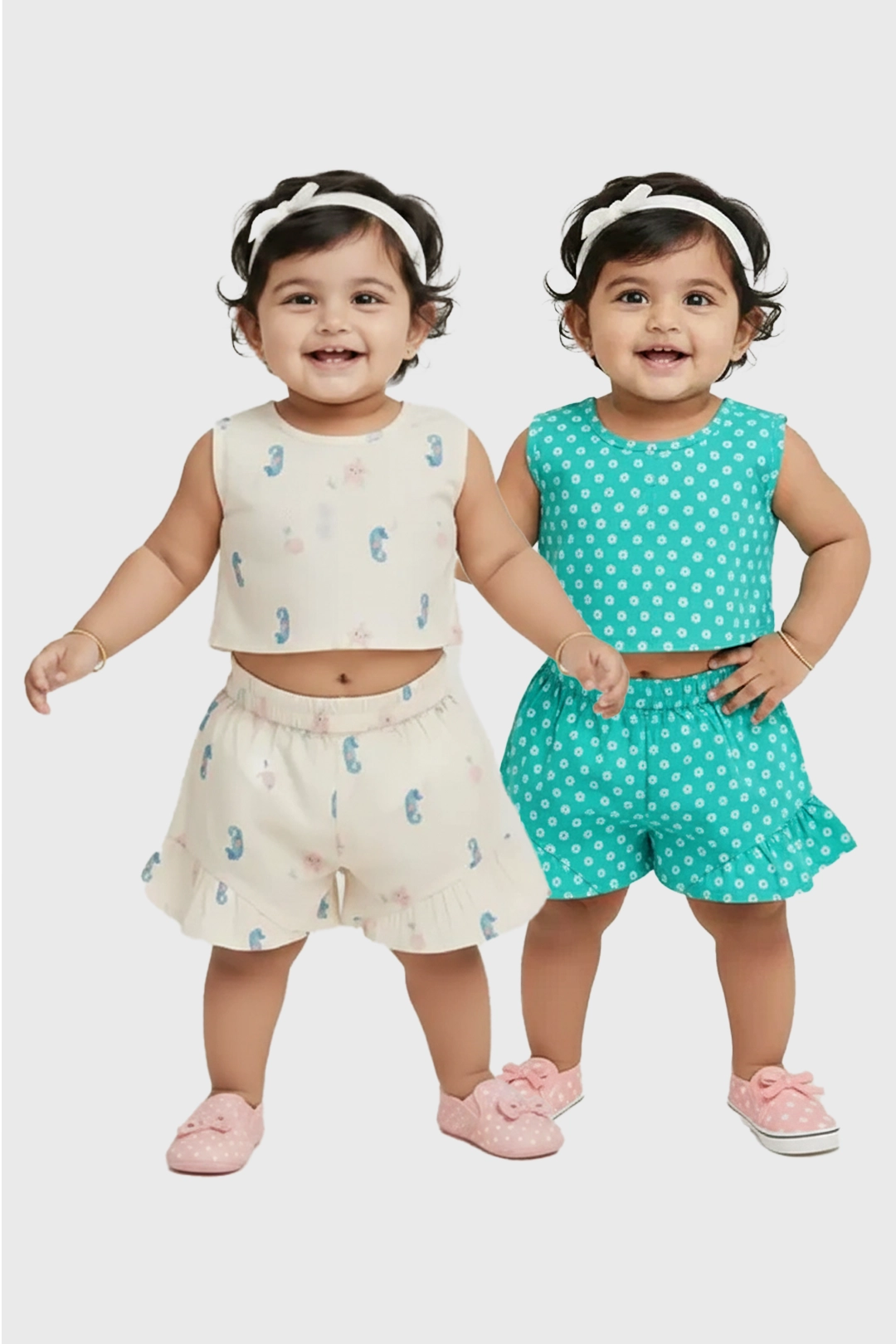 Girl Co-ord(Starry Shells & Aqua Bubble) - Pack of 2