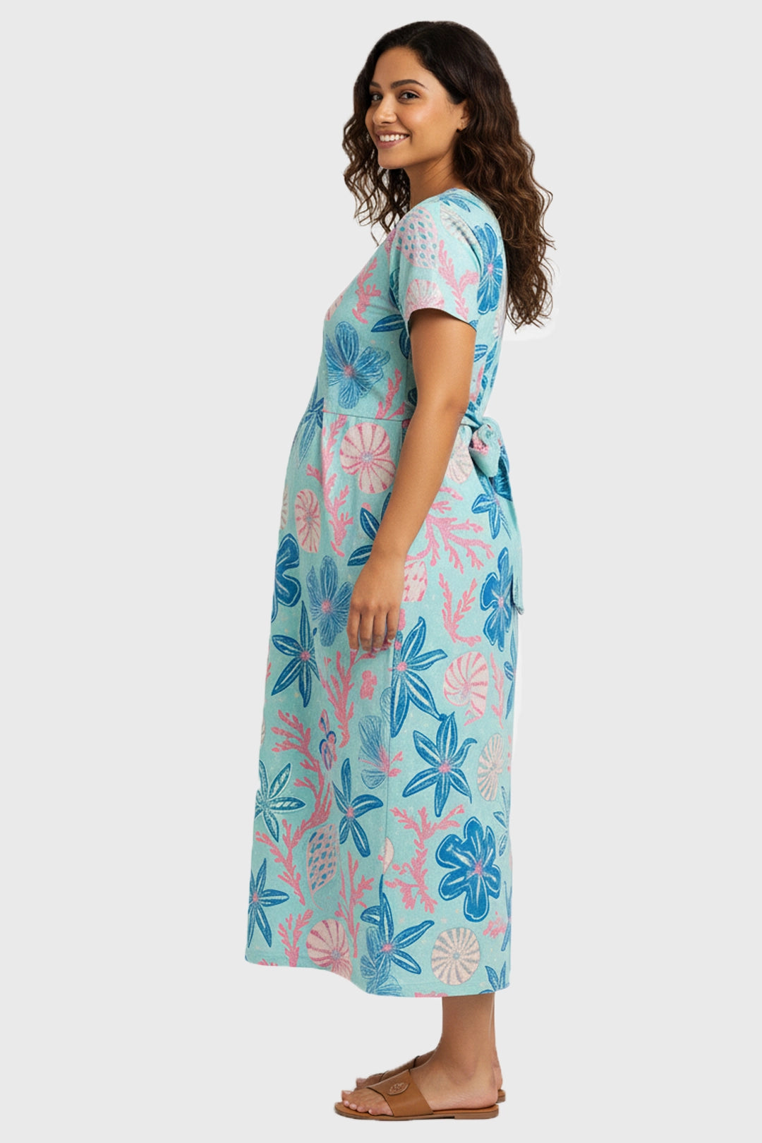 • Design: Relaxed A-line silhouette that gently flows over your curves. 3/4th length night gown, with waist belt to tie at back