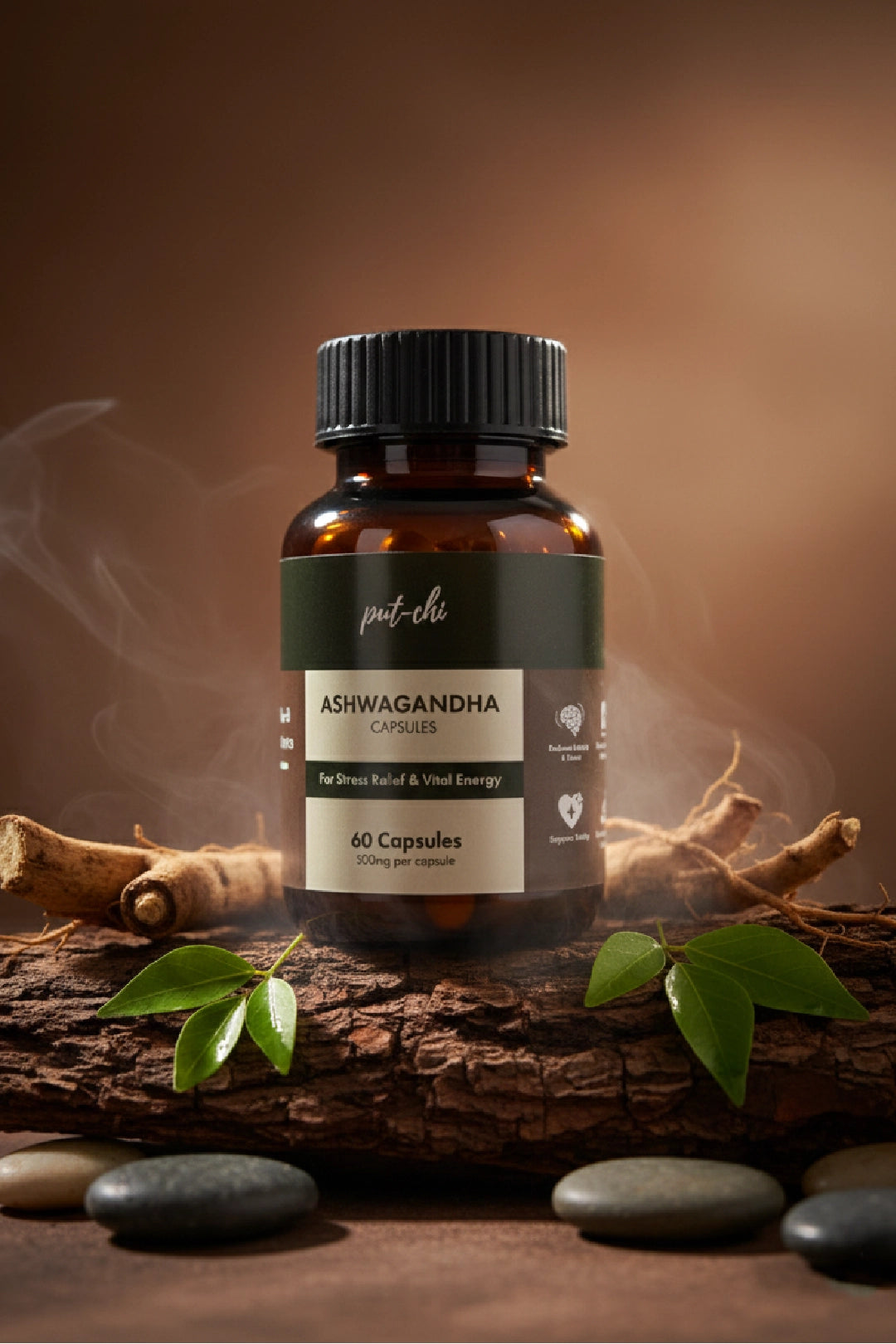 Reclaim balance and calm with Putchi Ashwagandha Capsules, thoughtfully formulated to support stress management, strength, and overall vitality. Made using premium Ashwagandha root powder, this adaptogenic herb has been traditionally used to help the body cope with daily stress while supporting energy, focus, and wellbeing.