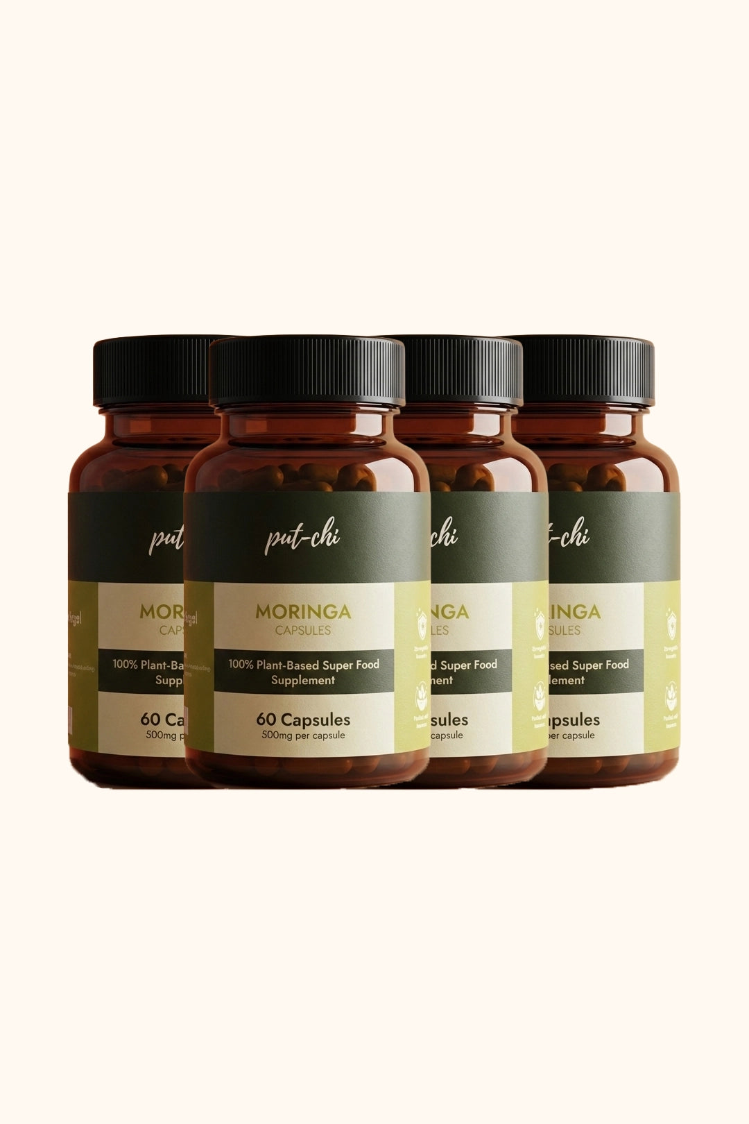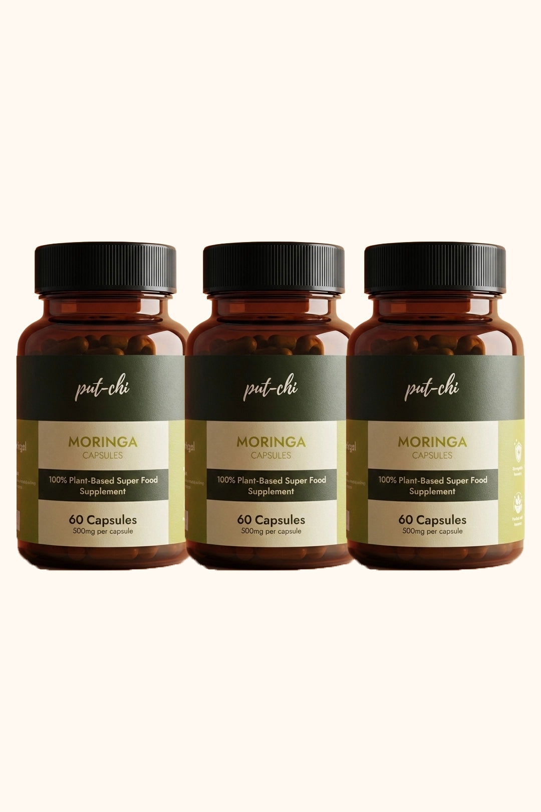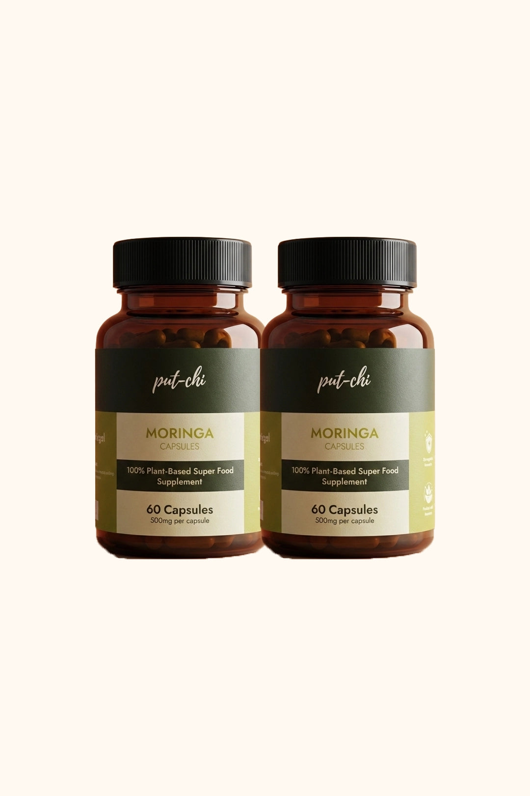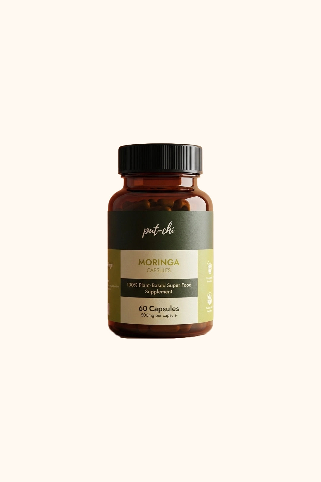 Putchi Moringa Capsules are plant-based, vegan-friendly, and ethically sourced, created with care and integrity. Designed for daily wellness, this supplement fits seamlessly into your self-care routine—without harmful chemicals or artificial additives.