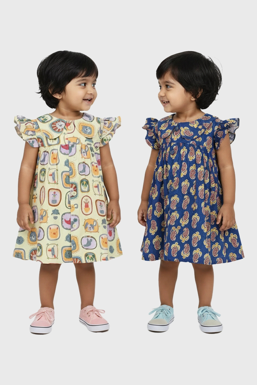 Cotton Girls Frock (Paisley Charm & Zoo Crew) - Pack of 2