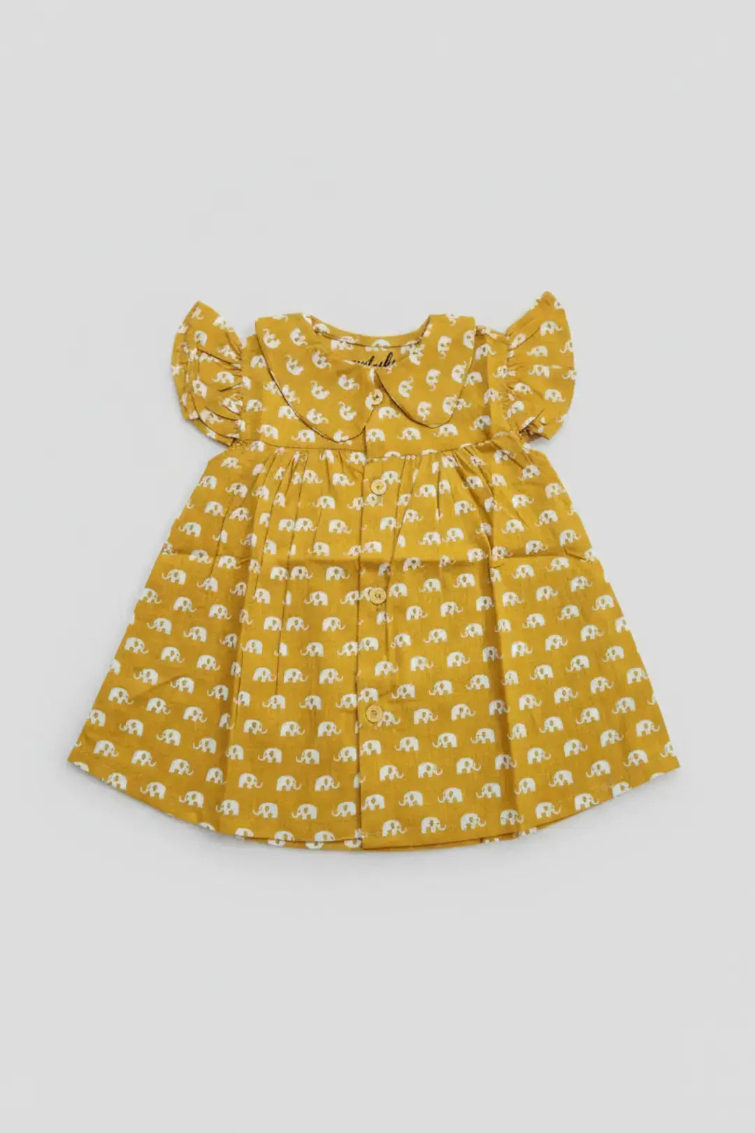 Highlights: • Fabric: 100% soft breathable cotton with gentle texture • Fit: Relaxed A-line silhouette fit • Closure: Front button-down for fuss-free dressing • Neckline: Classic Peter Pan collar for a timeless, cute finish • Sleeves: Sweet ruffle sleeves adding a touch of charm and playfulness