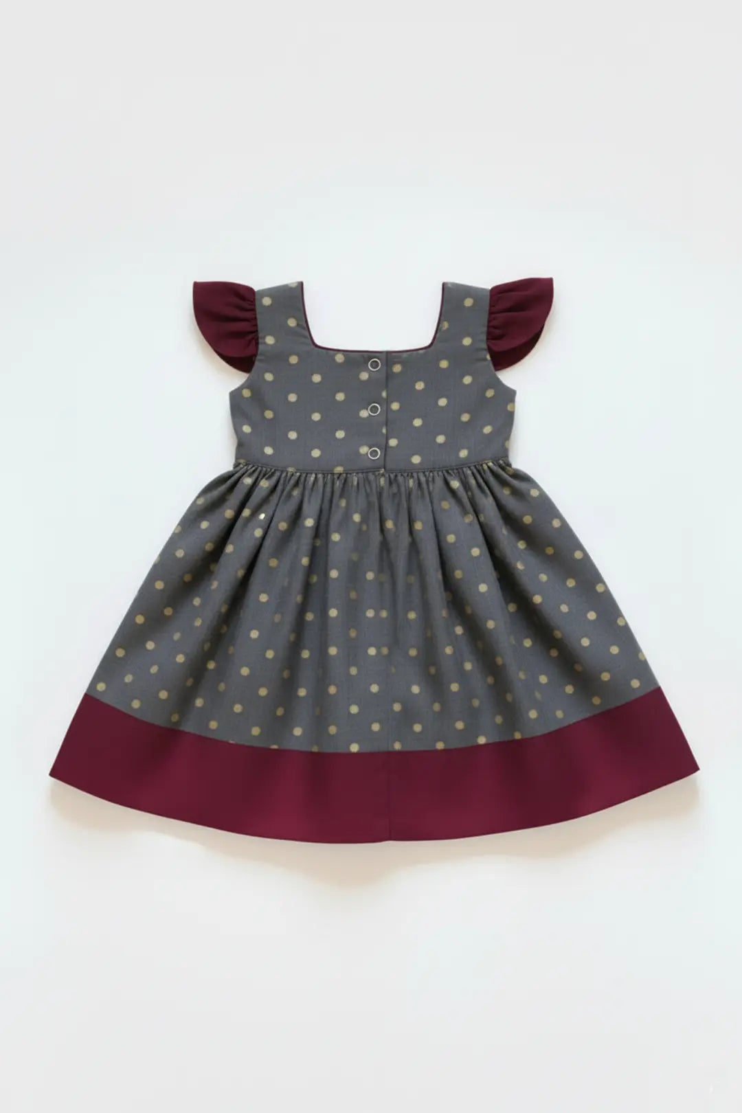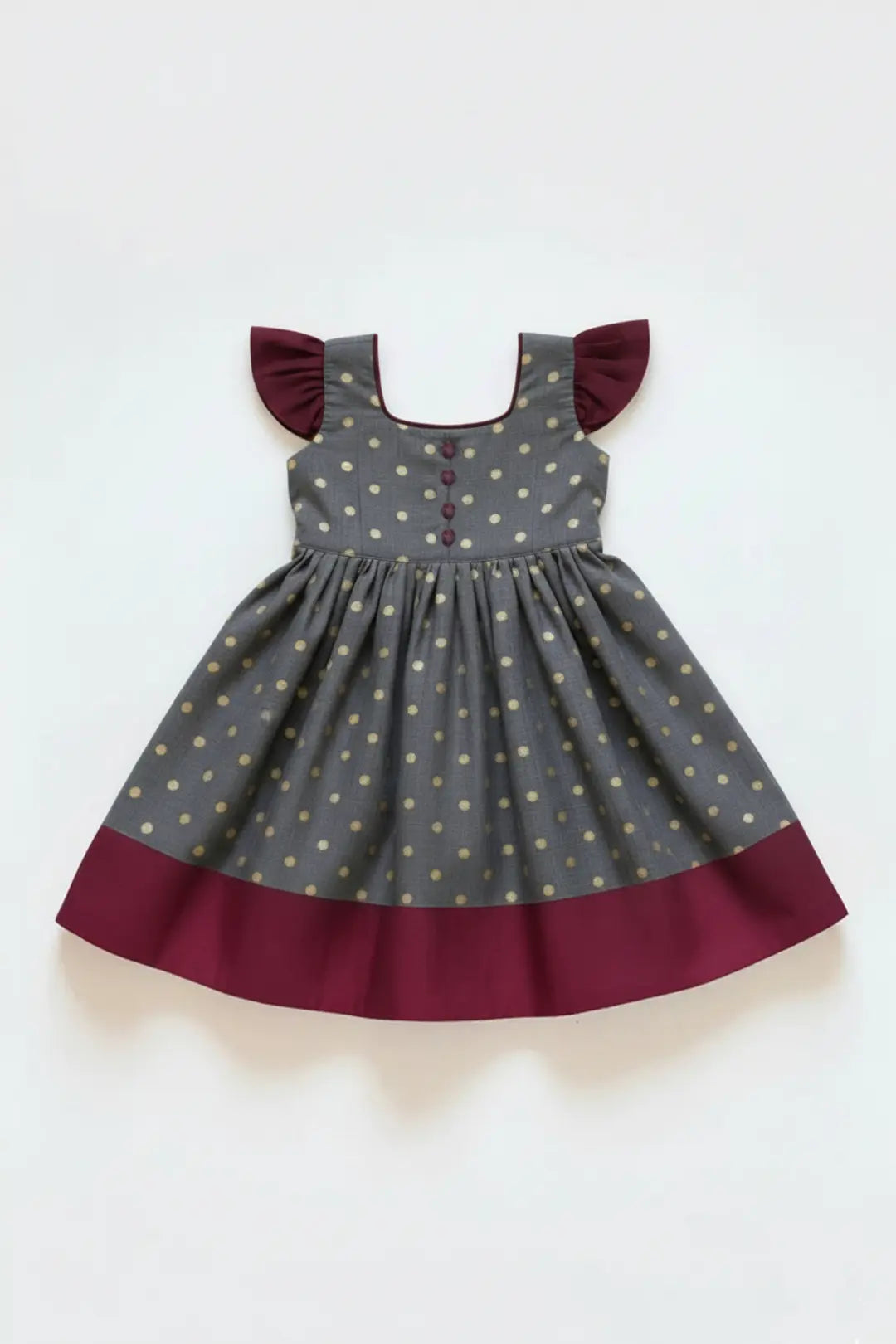 •       Design: Scoop neckline with contrast buttons, flutter sleeves, and a bold contrast border for a festive charm