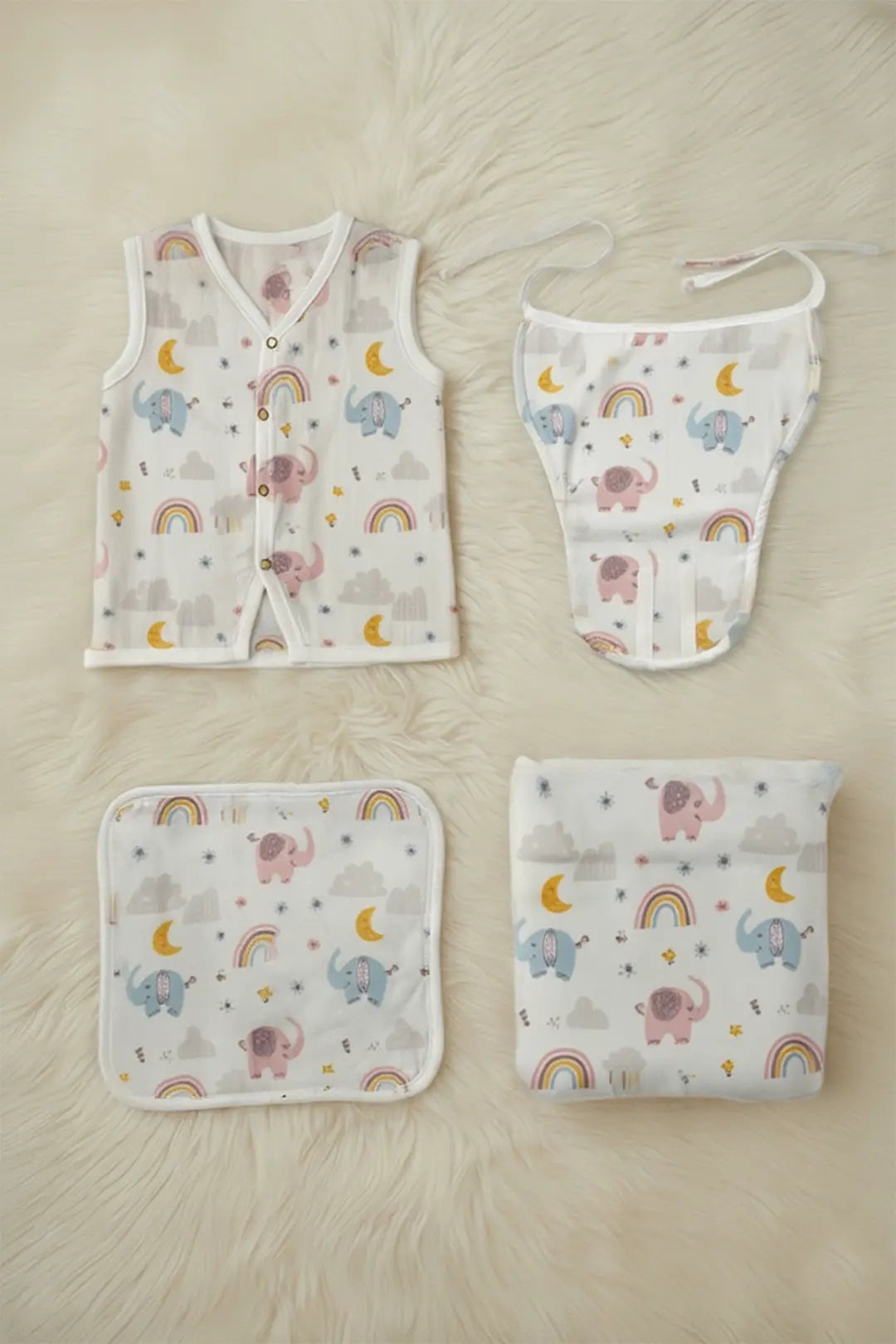 Perfect for hospital bags, first-week routines, or heartfelt gifting, this kit is designed to support delicate newborn skin with lightweight fabrics and fuss-free essentials parents reach for daily.