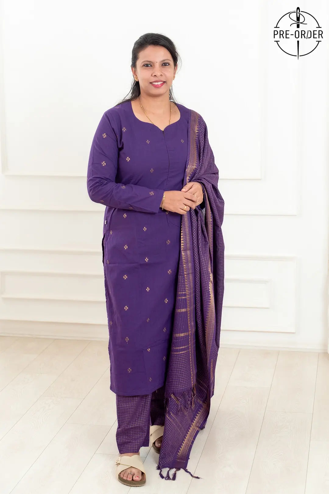 • Length & Fit: Top - 43” long; fits perfectly for various heights, Bottom - 38" Trouser, Dupatta - 2.5mtrs with golden zari detailing