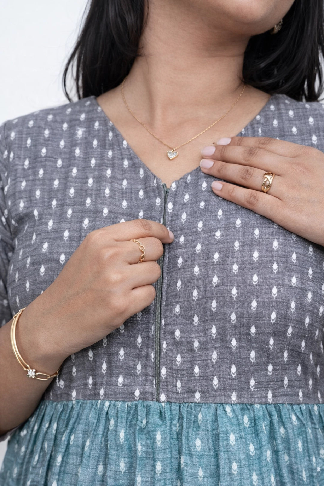 • Feeding Access: 9" Concealed feeding access integrated within the V-neck for easy nursing