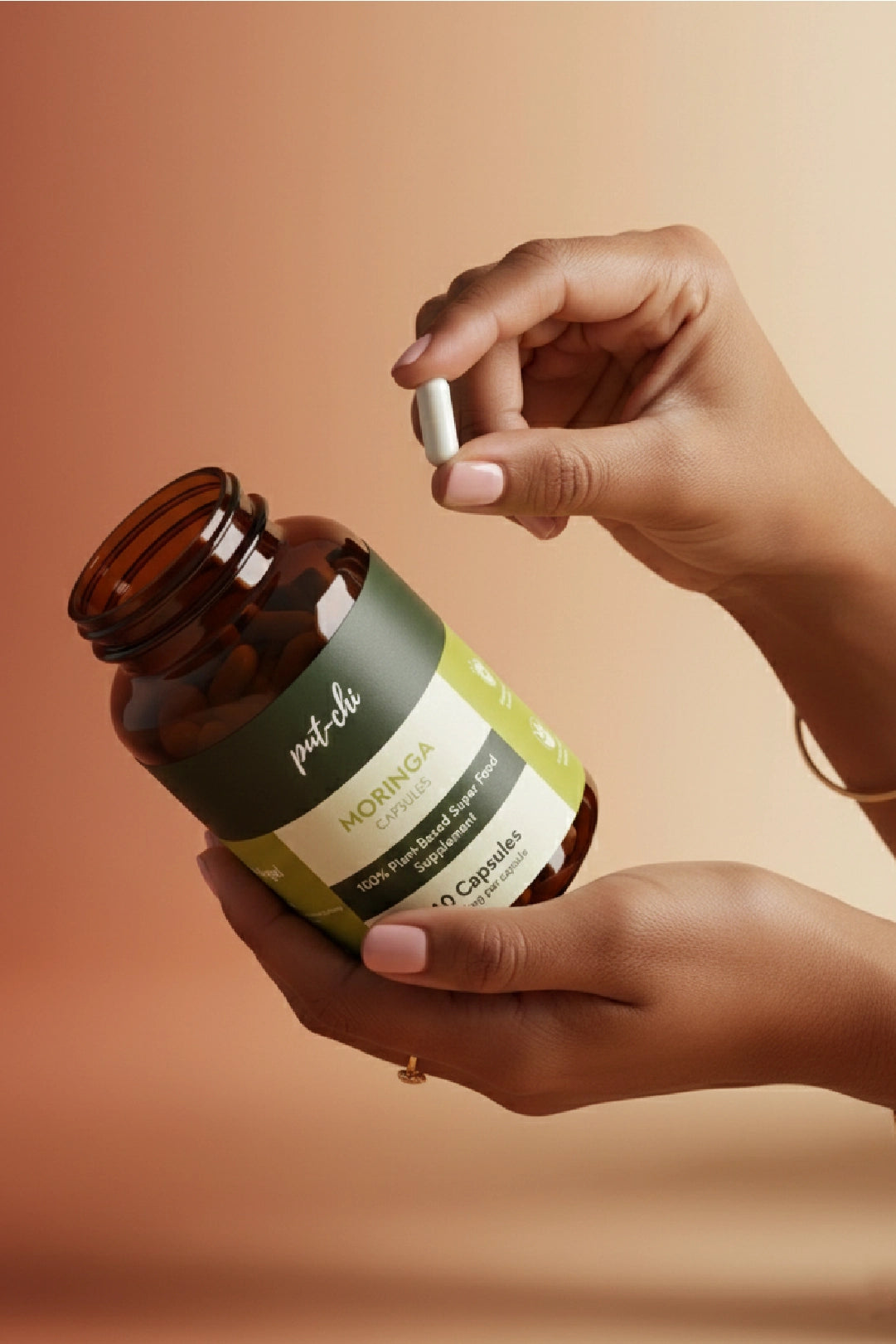 Putchi Moringa Capsules are plant-based, vegan-friendly, and ethically sourced, created with care and integrity. Designed for daily wellness, this supplement fits seamlessly into your self-care routine—without harmful chemicals or artificial additives.