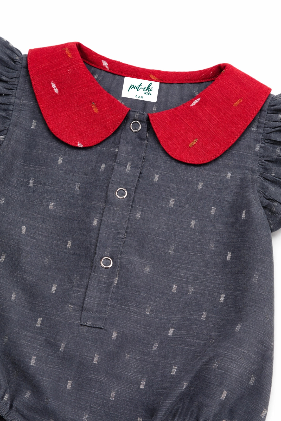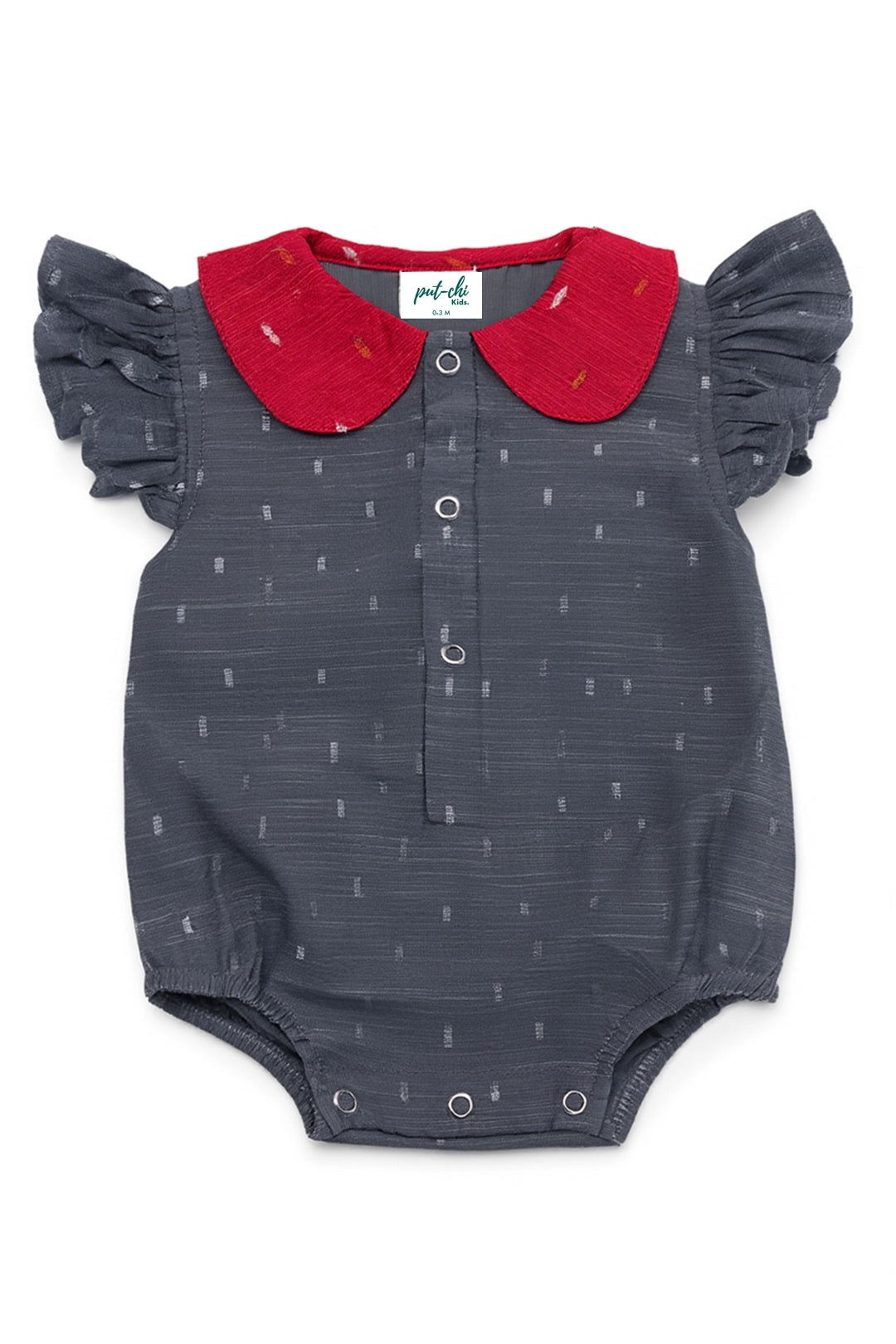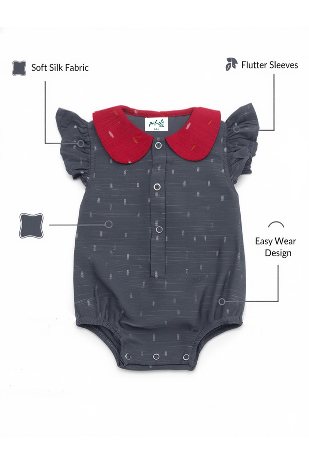 • Design: Short flutter sleeves, contrast Peter Pan collar, front button placket, and snap-button closure at the bottom for easy wear and diaper changes