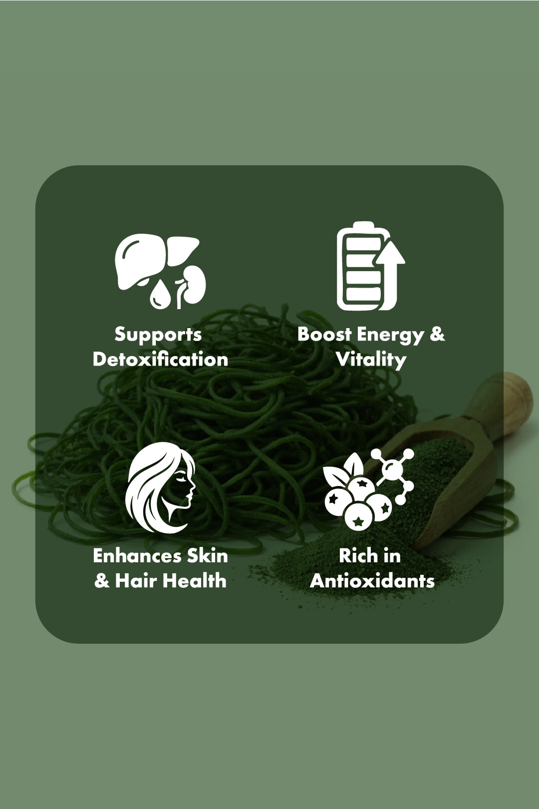 Nutrient-rich spirulina helps nourish skin and hair from within.