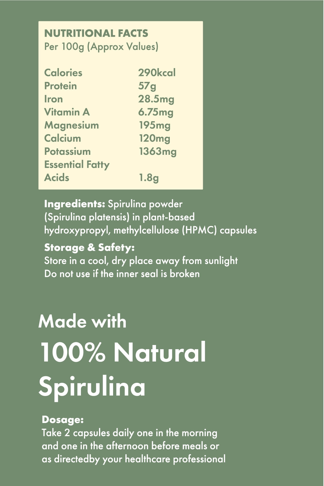 Putchi Spirulina Capsules – Plant-Based Superfood for Energy & Immunity (60 Capsules)