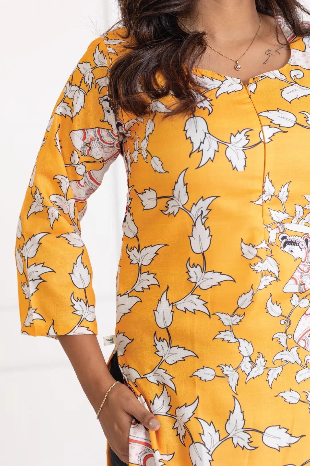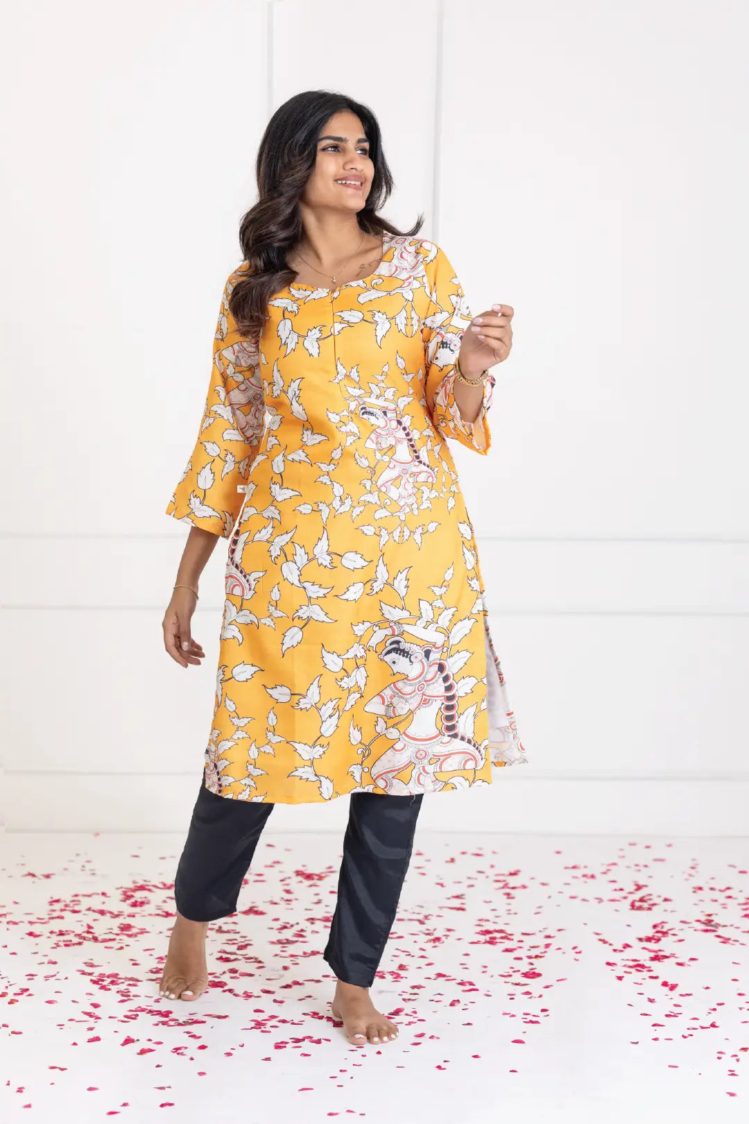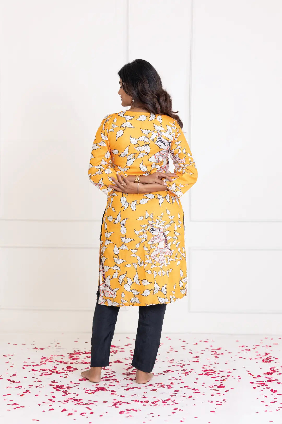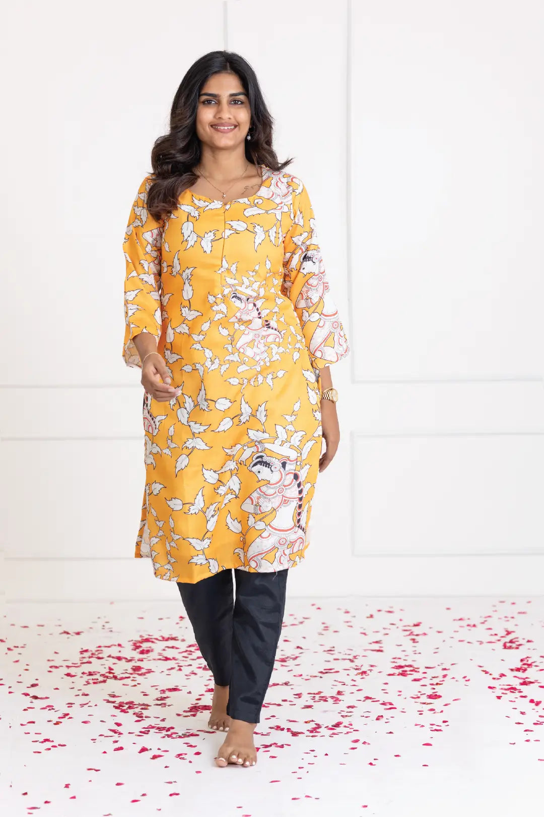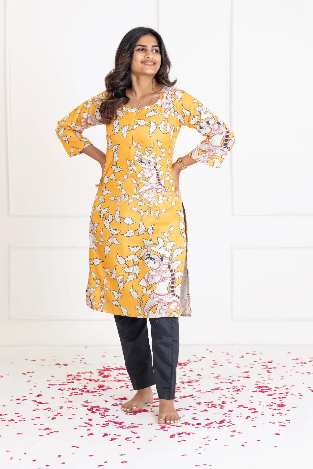 • Stitching Details: Round neckline, Straight silhouette with slit