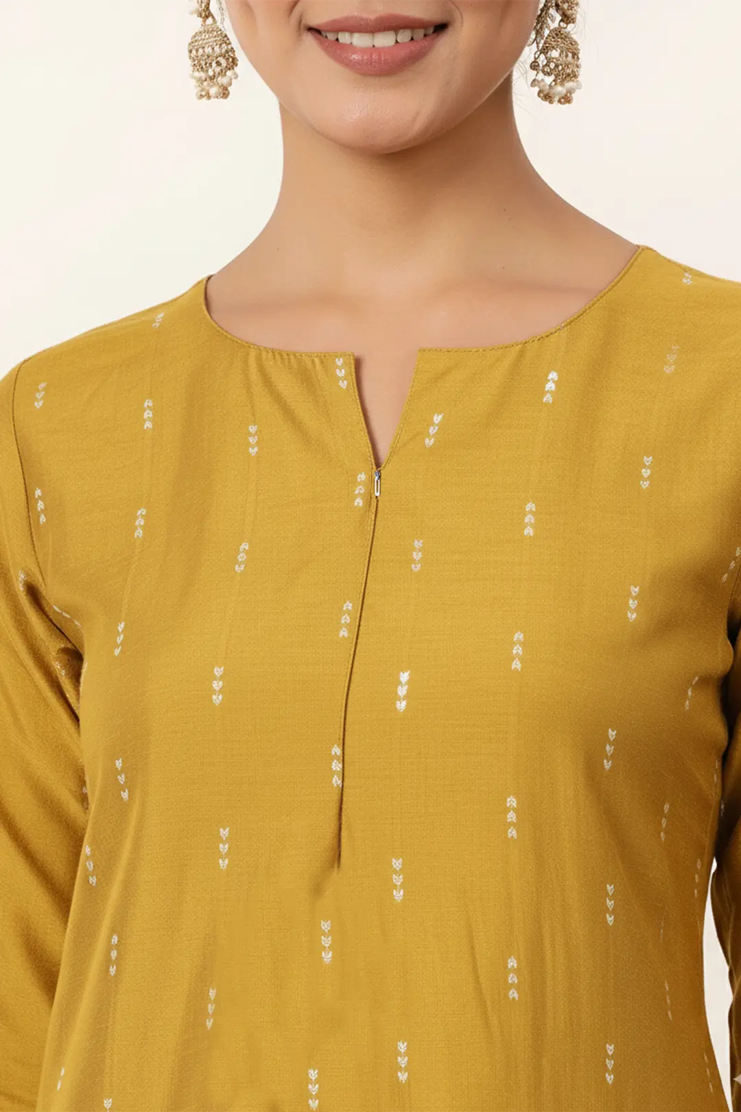 • Stitching Details: Leaf neckline, Straight silhouette with slit
