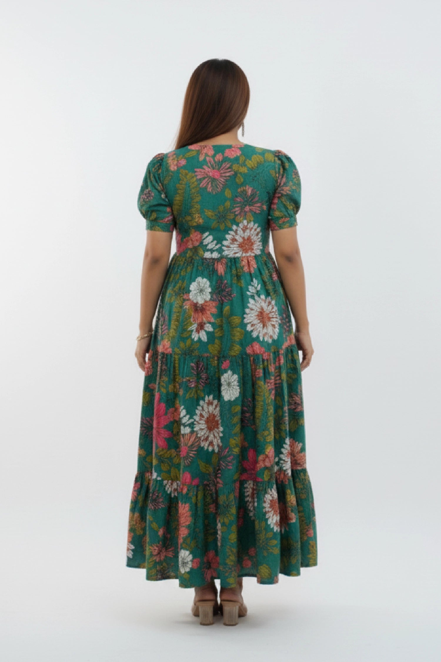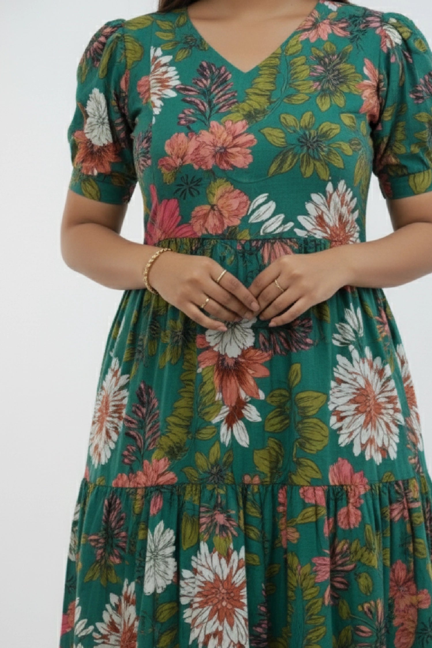 • Fit: Fit and flare silhouette, three-tiered gathered skirt, accommodating all body types and growing pregnancy bumps.
