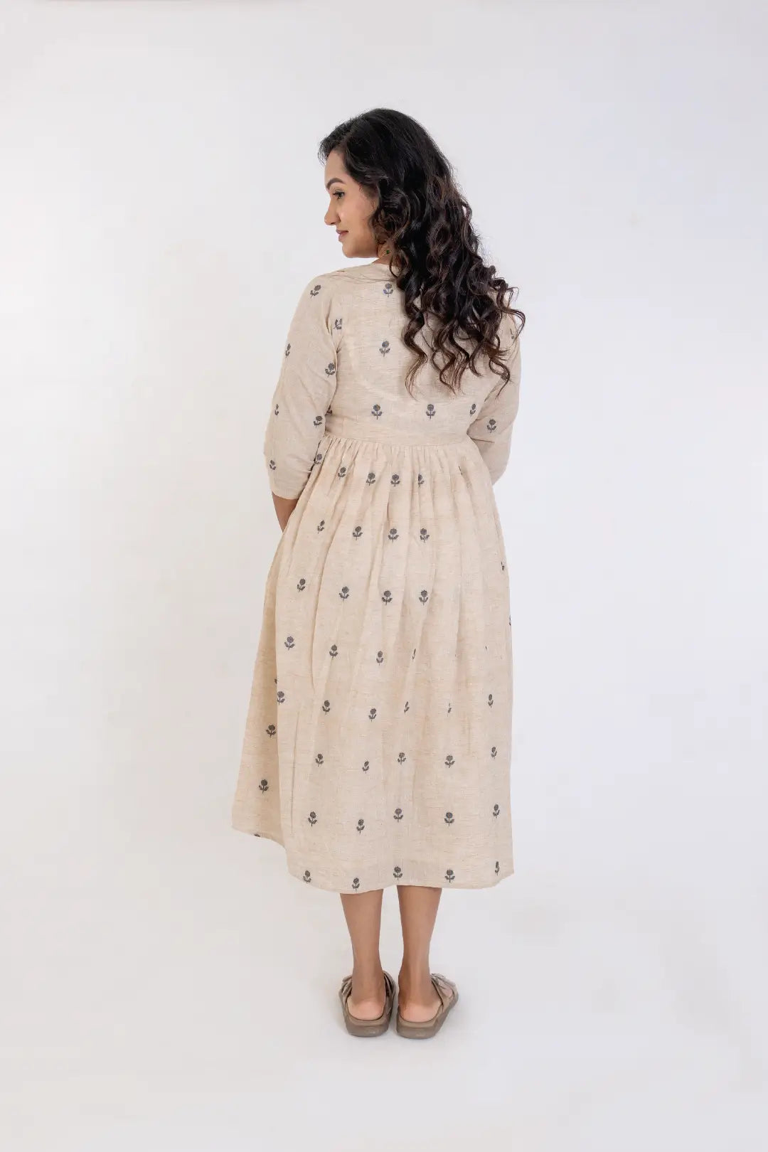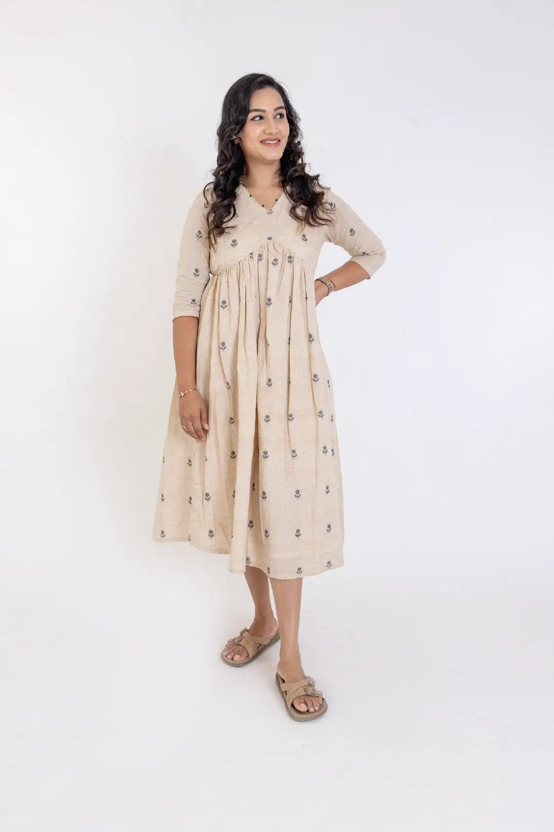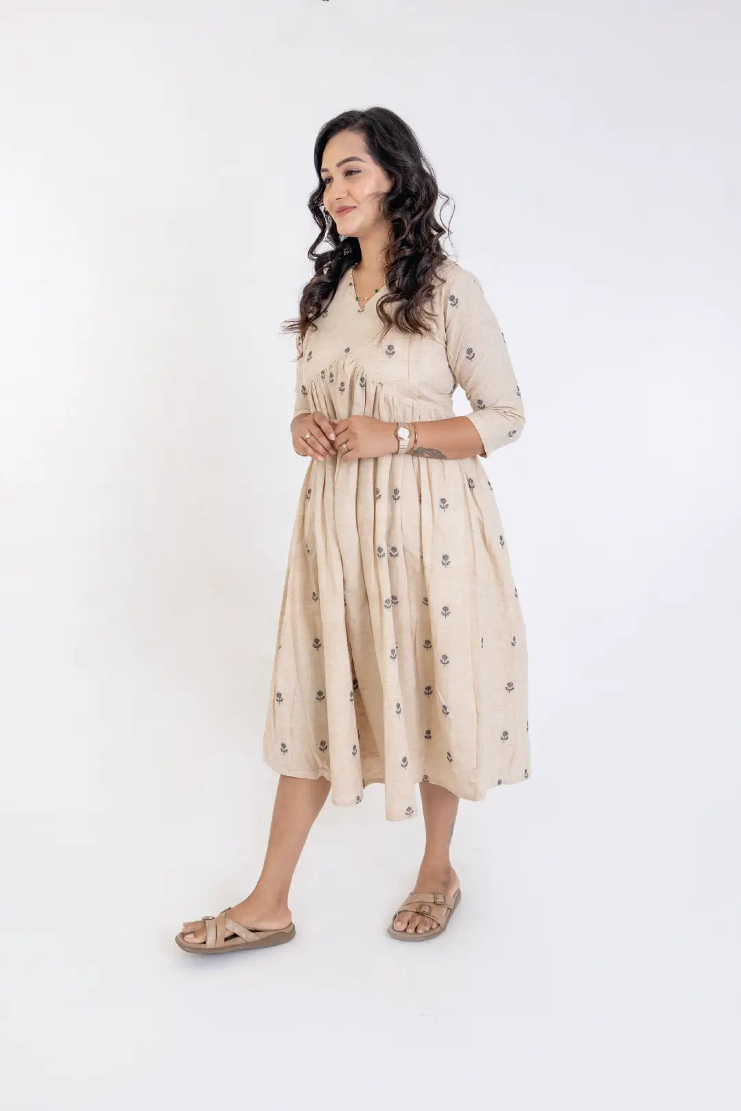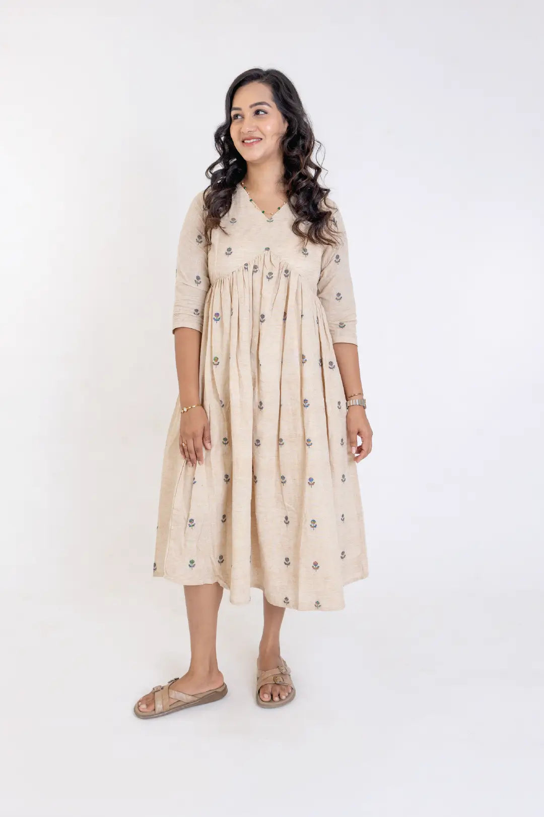 •     Fit: Fit and flare silhouette, accommodating all body types and growing pregnancy bumps