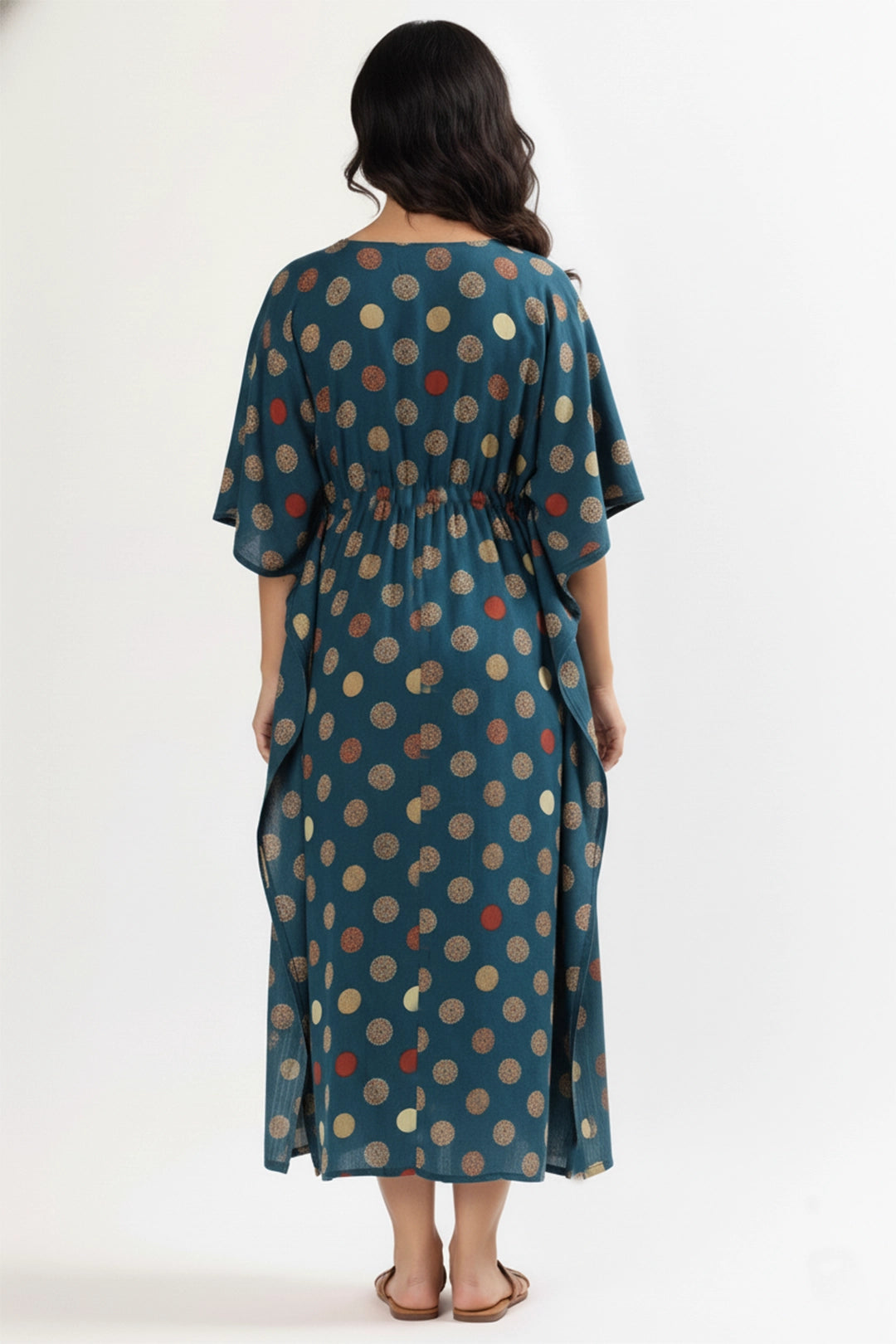 • Stitching Details: The round neckline with a small slit, A self-tie fabric belt at the waist allows for adjustable styling, creating a more defined shape or leaving it loose for a relaxed vibe. The side slits provide ease of movement, making this dress both stylish and functional