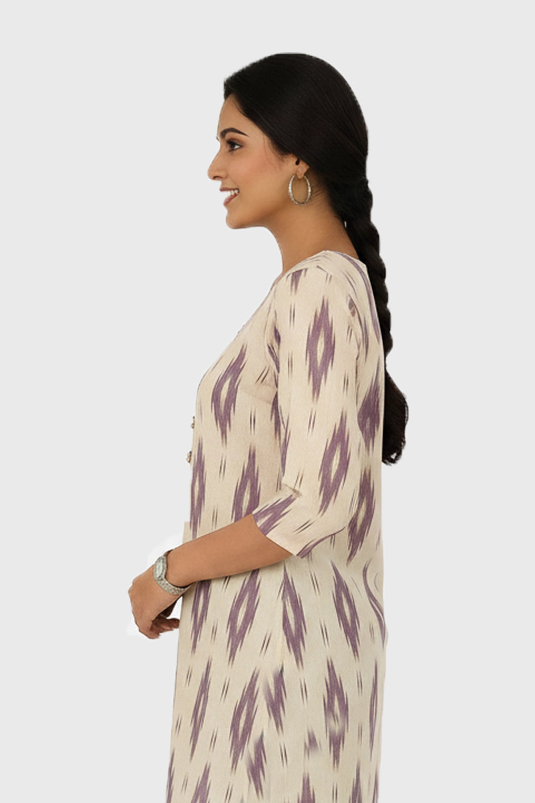 Neer Ikkat Feeding Peplum - Ivory Purple