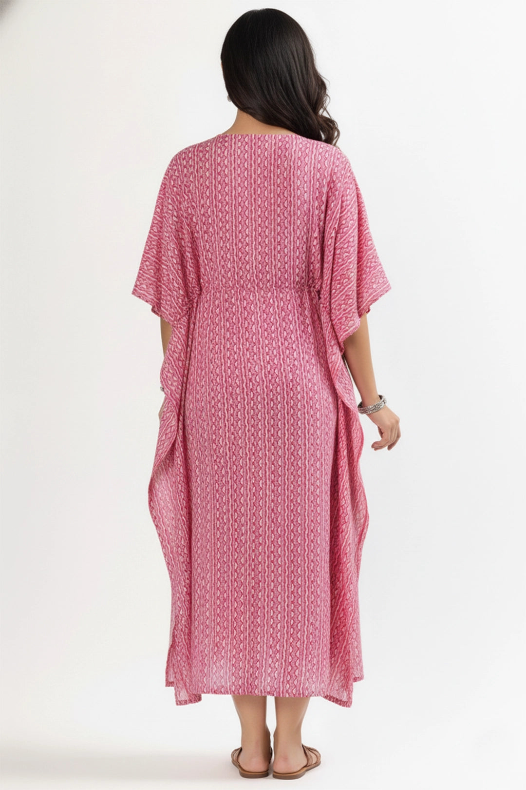 • Stitching Details: The round neckline with a small slit, A self-tie fabric belt at the waist allows for adjustable styling, creating a more defined shape or leaving it loose for a relaxed vibe. The side slits provide ease of movement, making this dress both stylish and functional