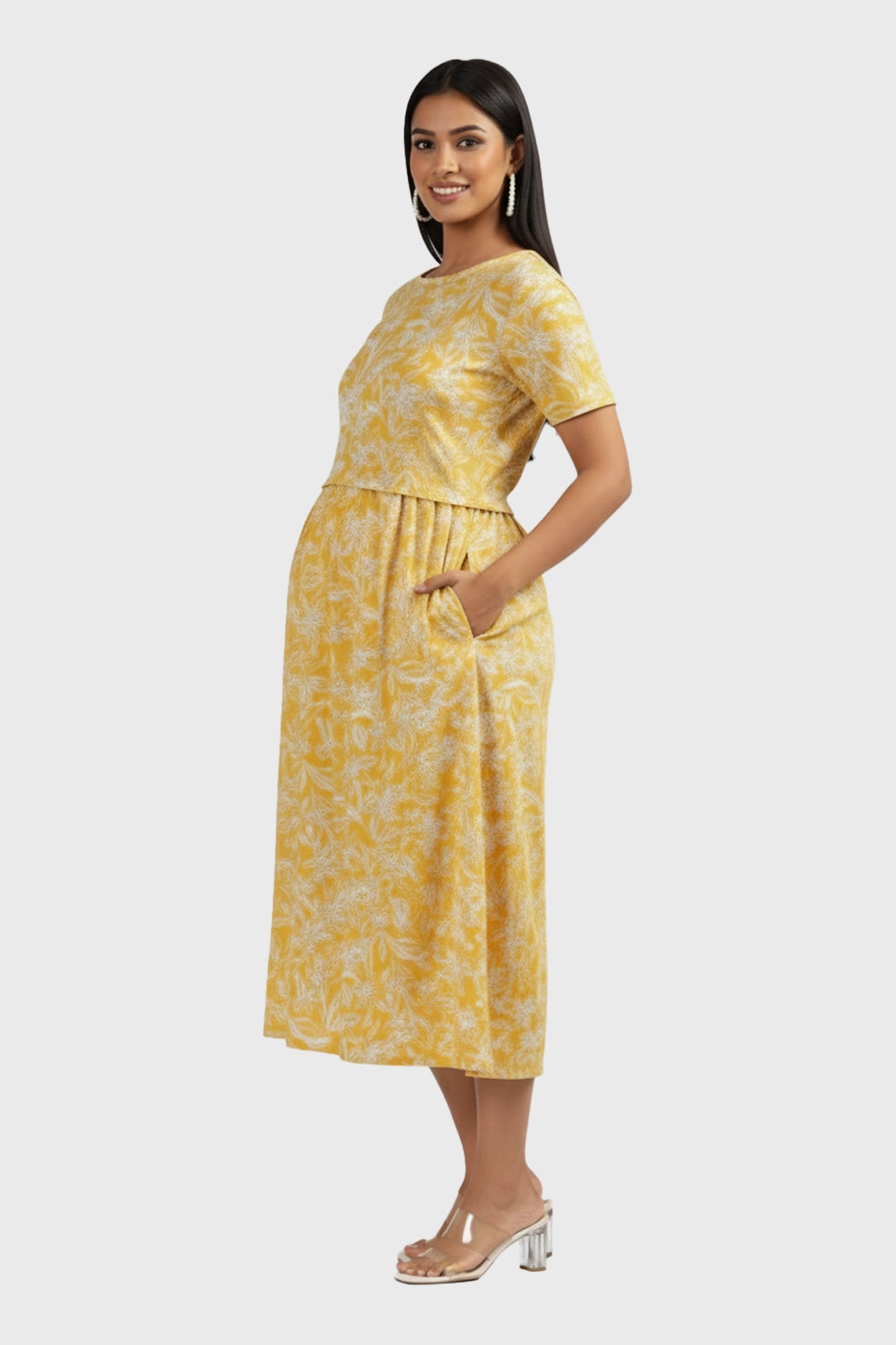 Sunburst Floral Zipless Feeding Gown – Mustard Floral