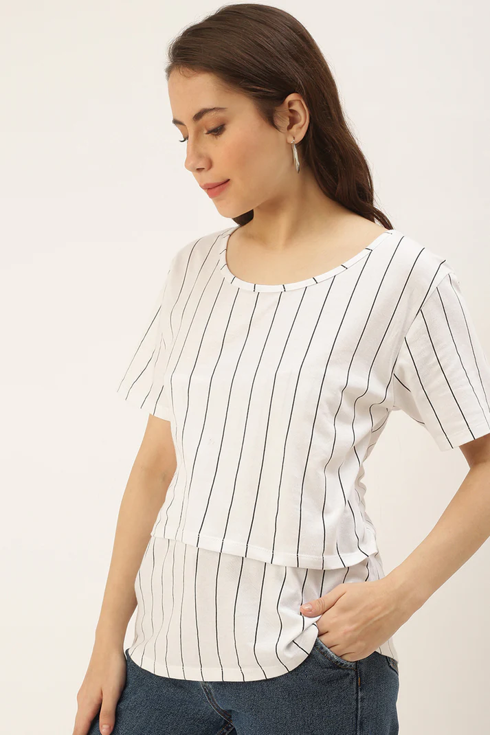 Layered Nursing T-Shirt in Soft cotton striped fabric with hidden nursing access
