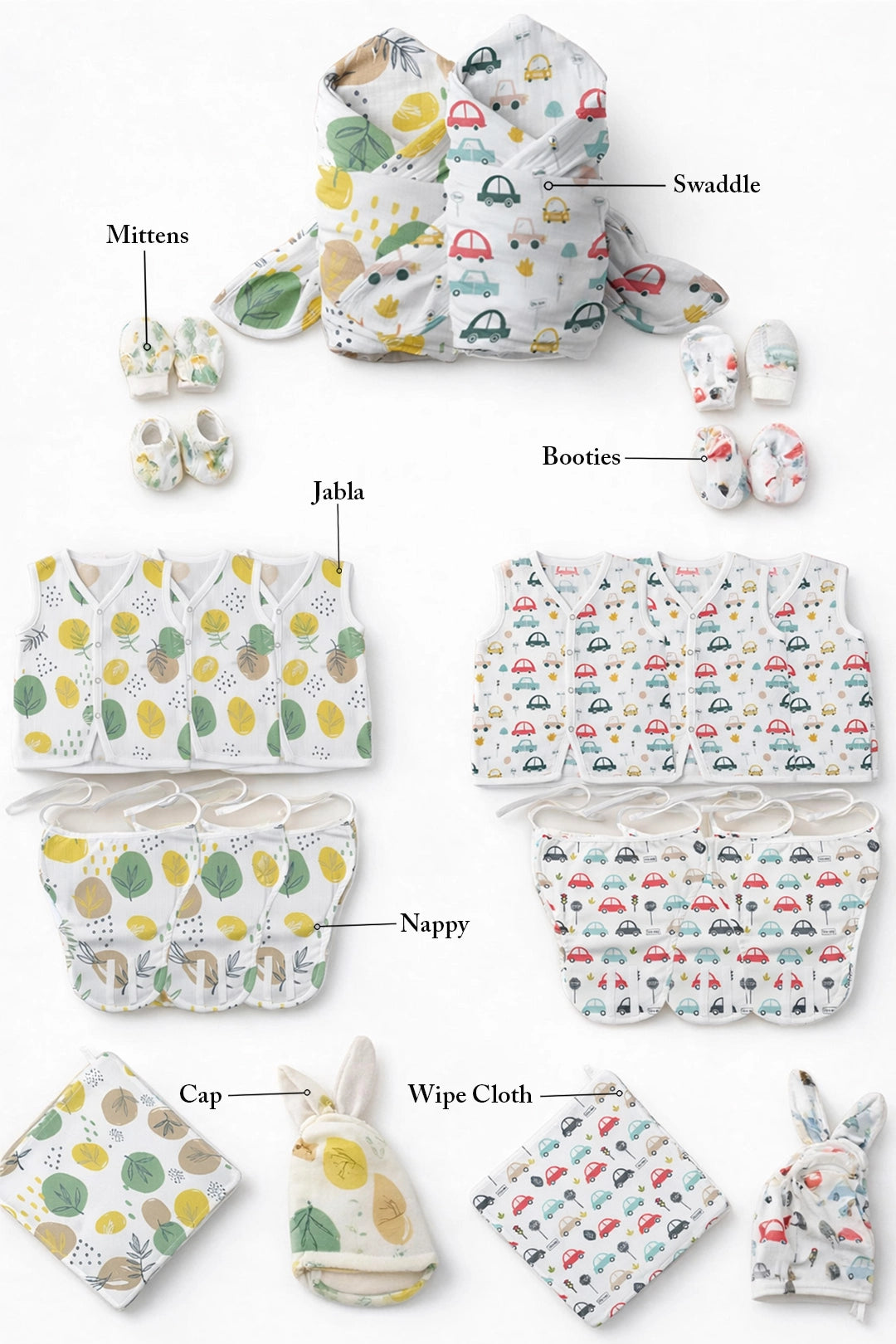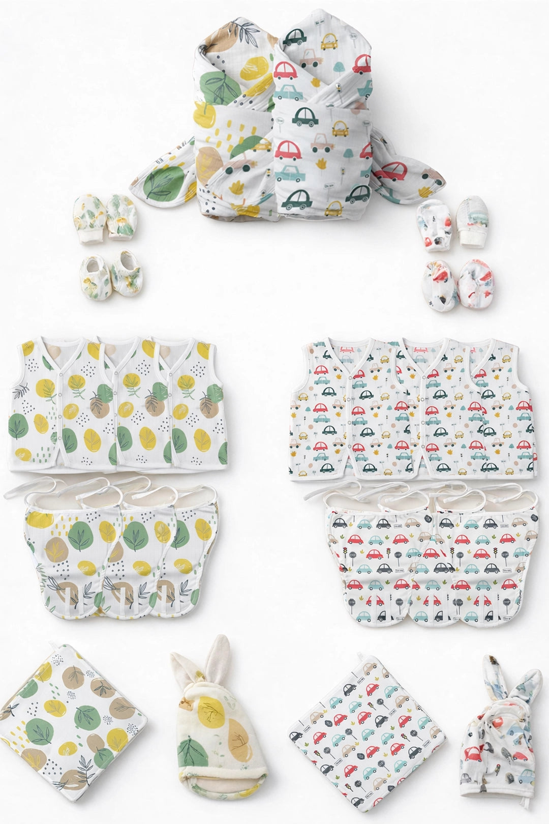 Crafted from breathable, baby-safe muslin, each piece is soft on delicate skin and ideal for daily use from day one.