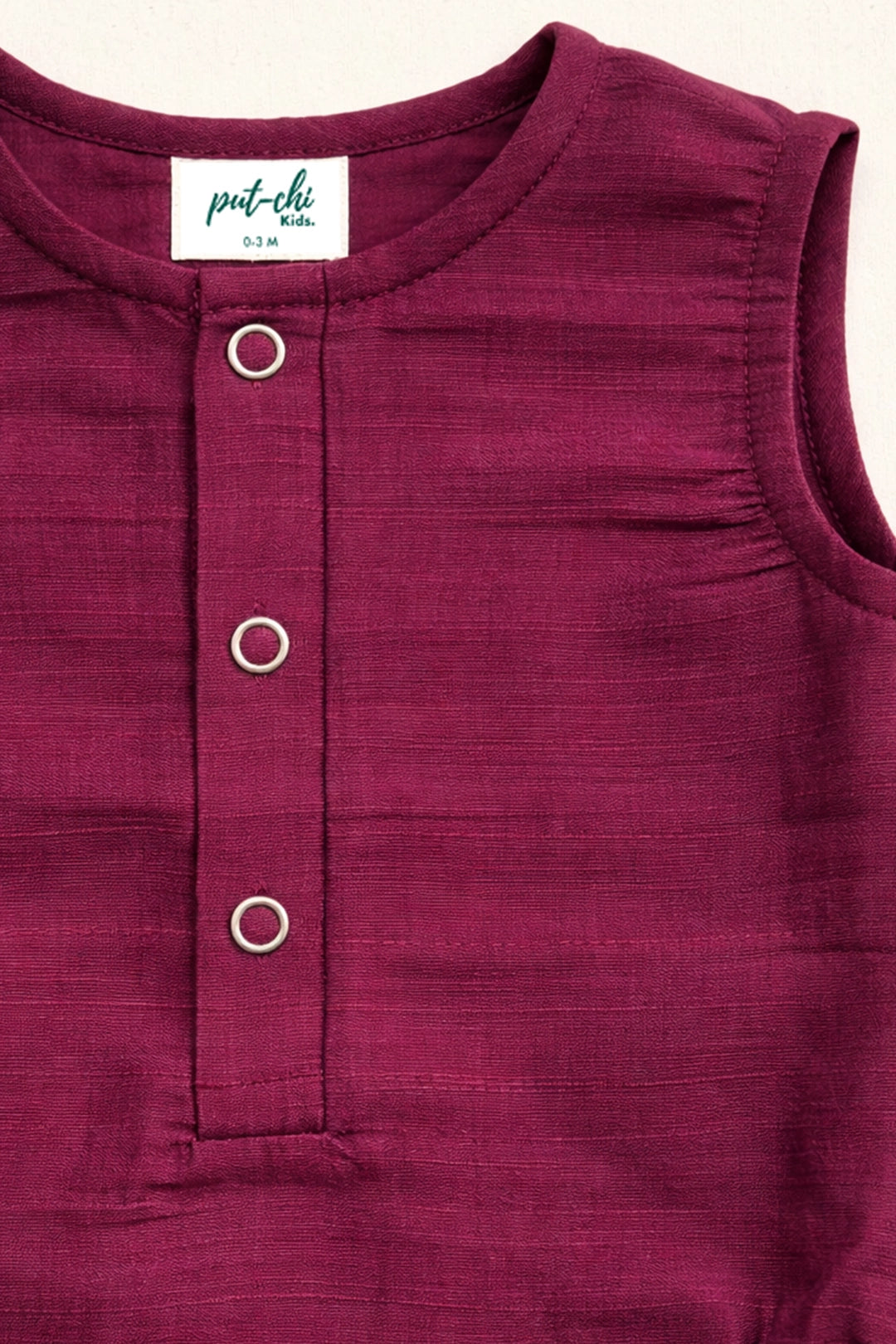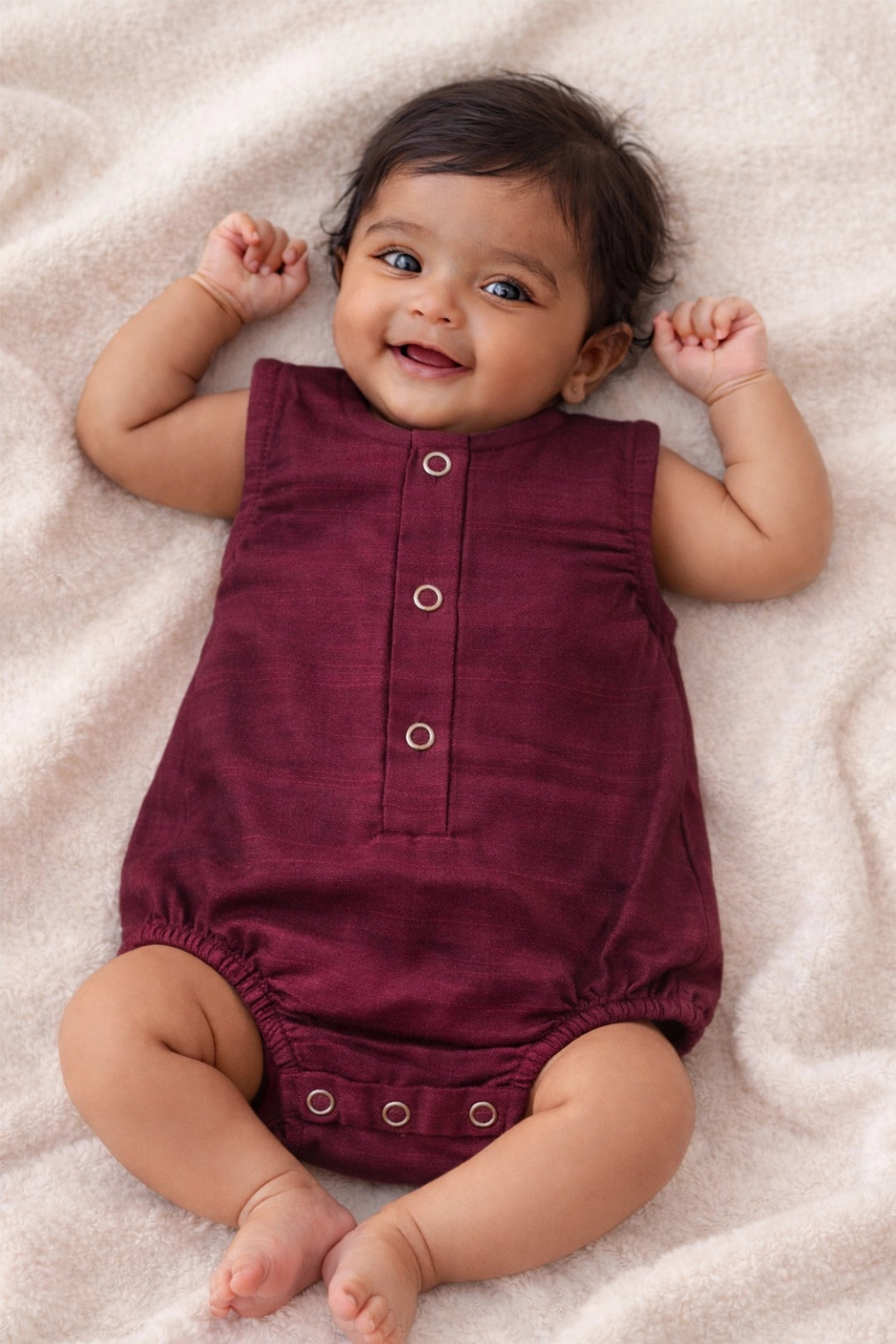 • Design: Minimal silhouette with front button placket and snap-button closure at the bottom for effortless dressing and diaper changes
