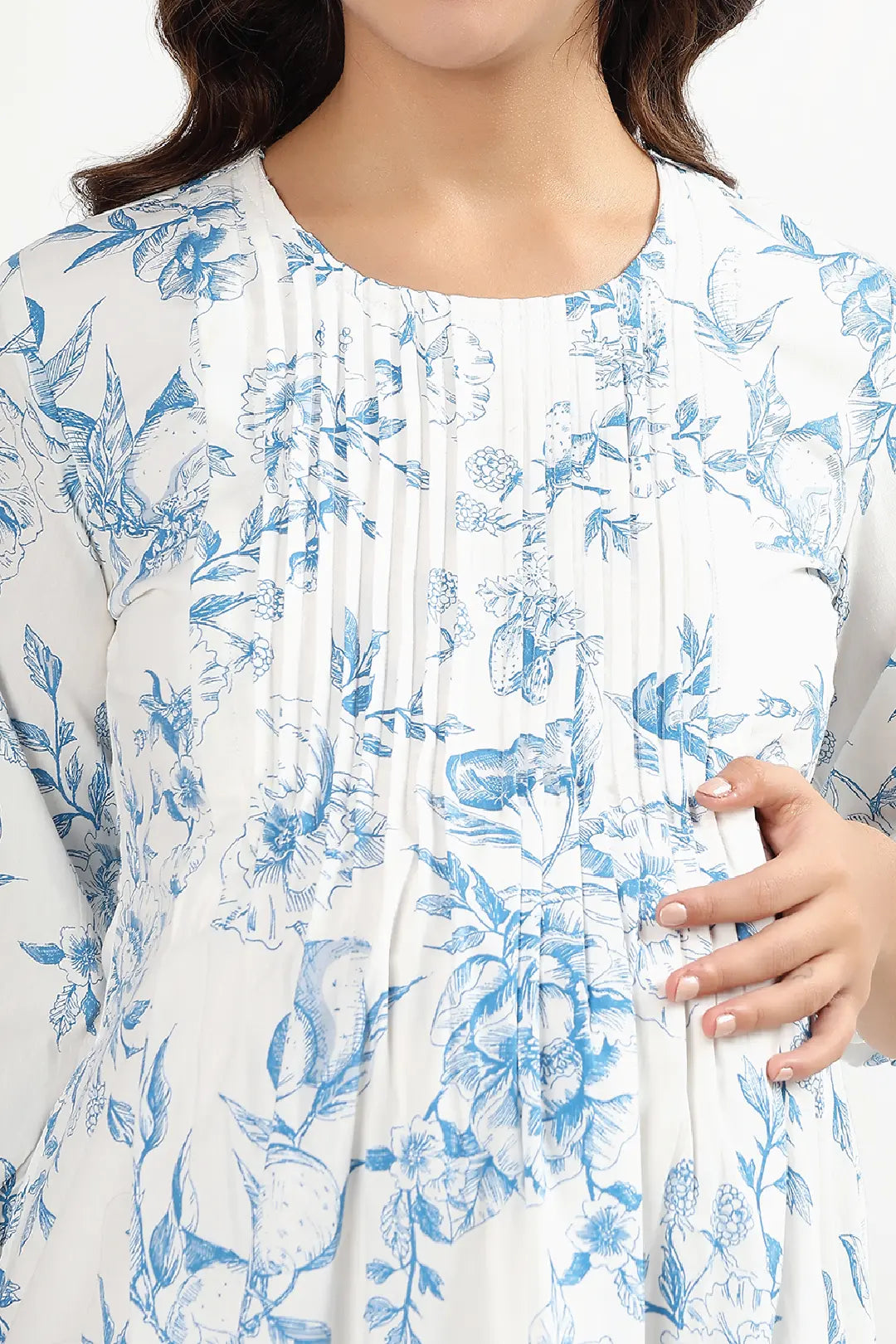 • Neckline: Round neckline with delicate pintuck detailing along the yoke