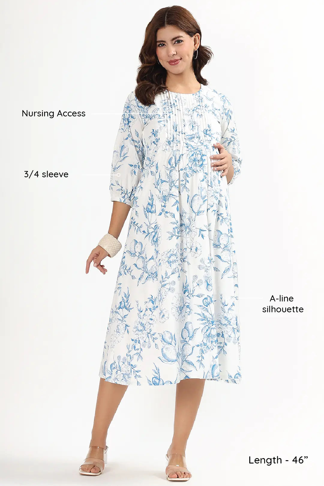 • Bump-Friendly: A-line accommodates growing bellies without compromising shape