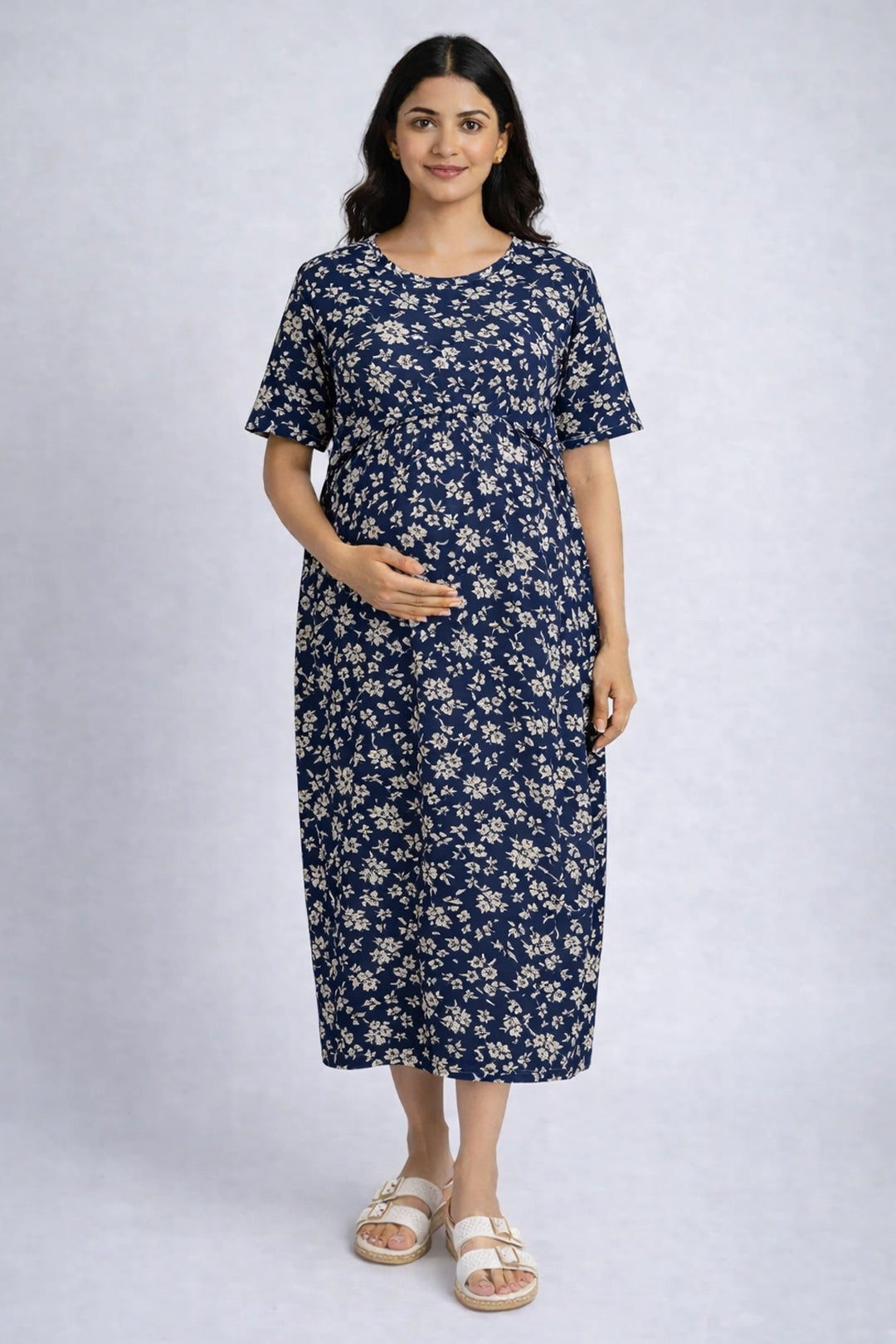 Moonlit Florals zipless feeding gown – Charcoal is where softness meets simplicity — thoughtfully crafted for slow mornings, relaxed afternoons, and every moment in between. Designed without zips or fuss, this piece gently supports you through pregnancy, postpartum, and nursing days, offering unmatched comfort with a quiet elegance.