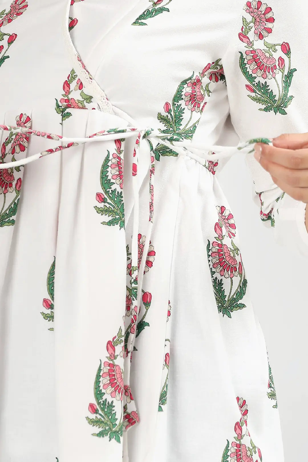 - Pastel Paisley: Wrap-style A-line silhouette with tie closure at the waist