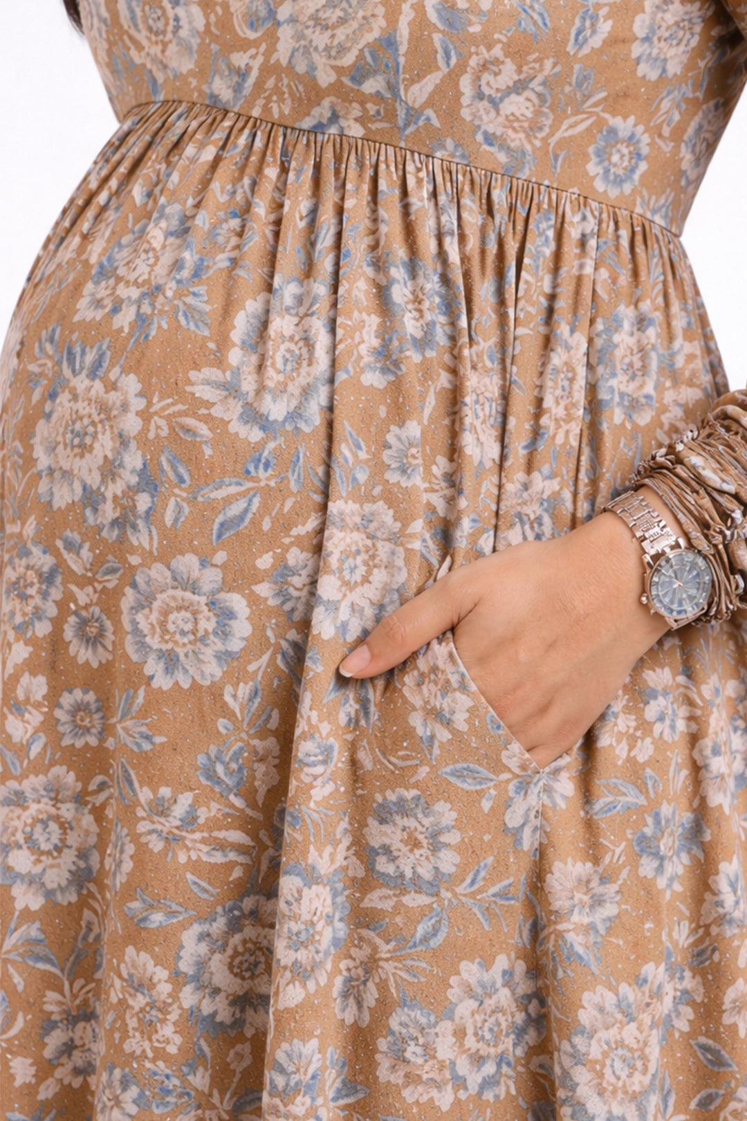 Scattered petals Feeding Dress - cinnamon