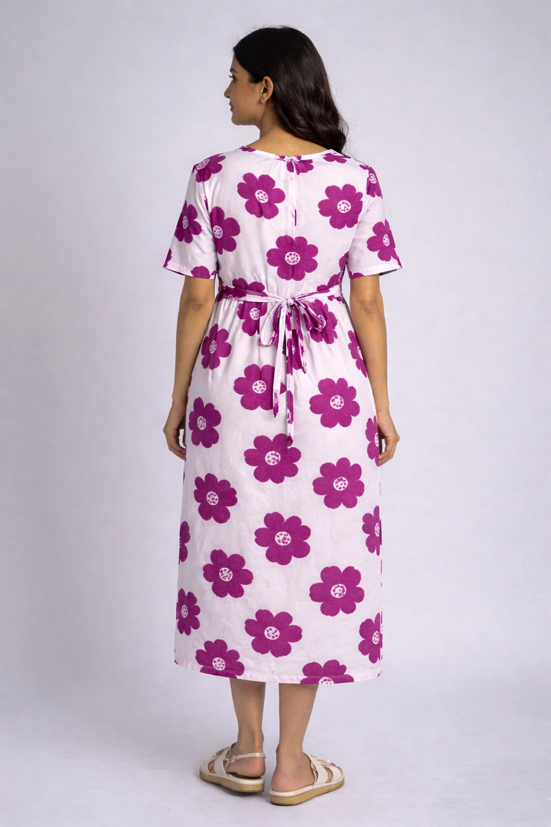 Blossom Bliss zipless feeding gown – Mulberry is where softness meets simplicity — thoughtfully crafted for slow mornings, relaxed afternoons, and every moment in between. Designed without zips or fuss, this piece gently supports you through pregnancy, postpartum, and nursing days, offering unmatched comfort with a quiet elegance.