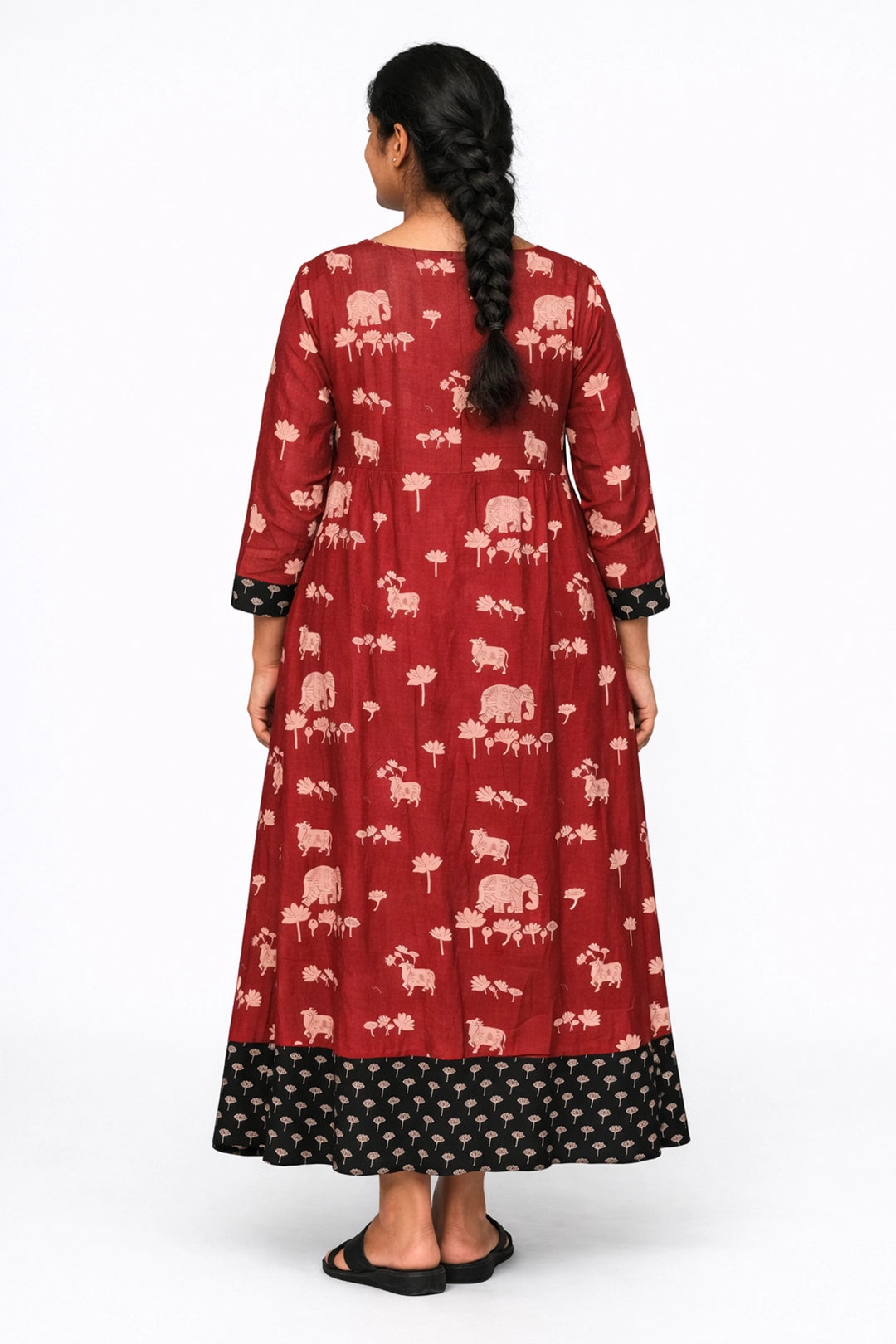 Design Detail: Contrasting black yoke with intricate ivory motifs and animal prints, adding a traditional yet contemporary appeal