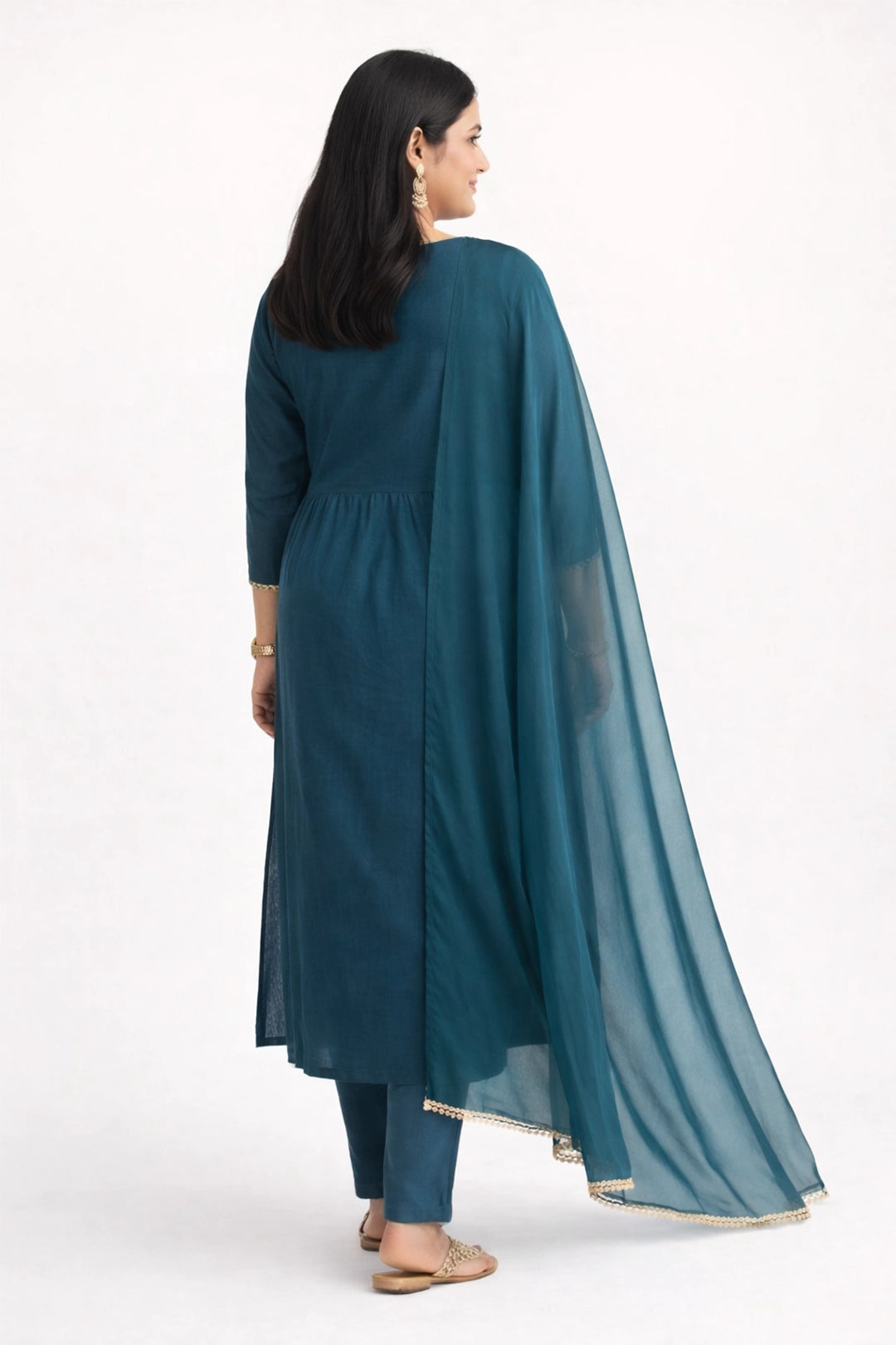 • Color: Royal Teal with elegant gold thread embroidery